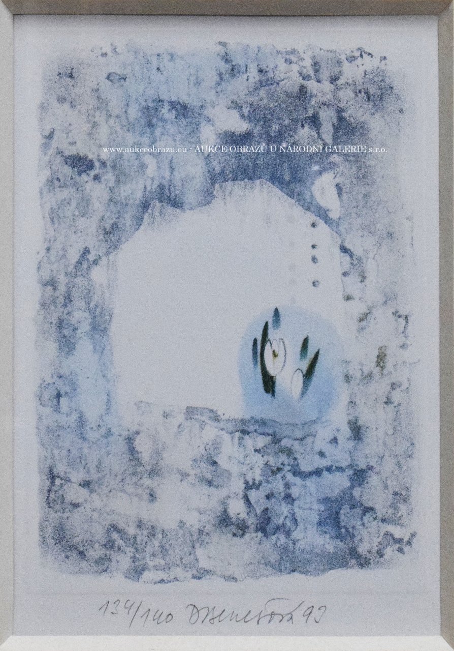 POPIS: Barevná litografie, rozměr ve výřezu 14 x 9,5 cm + pasparta, zaskleno