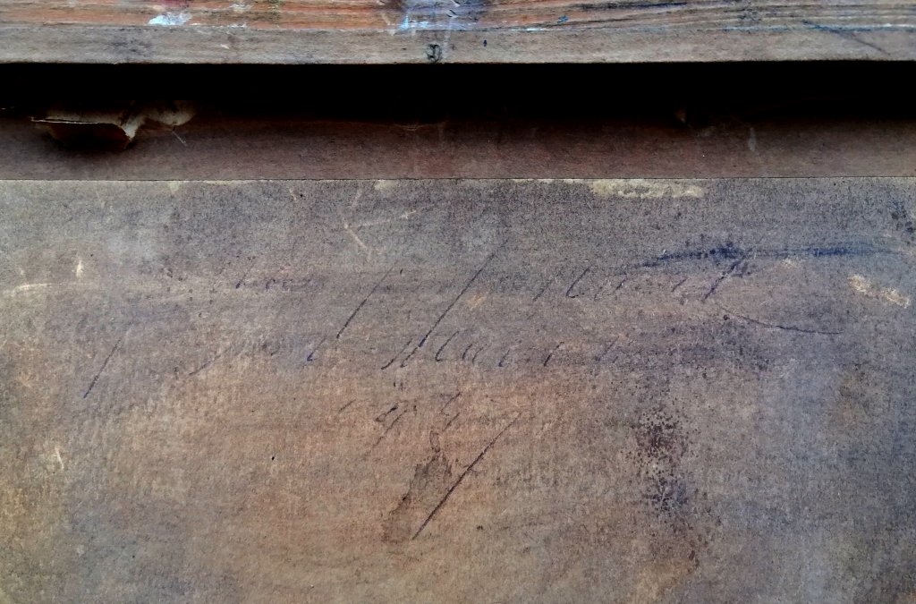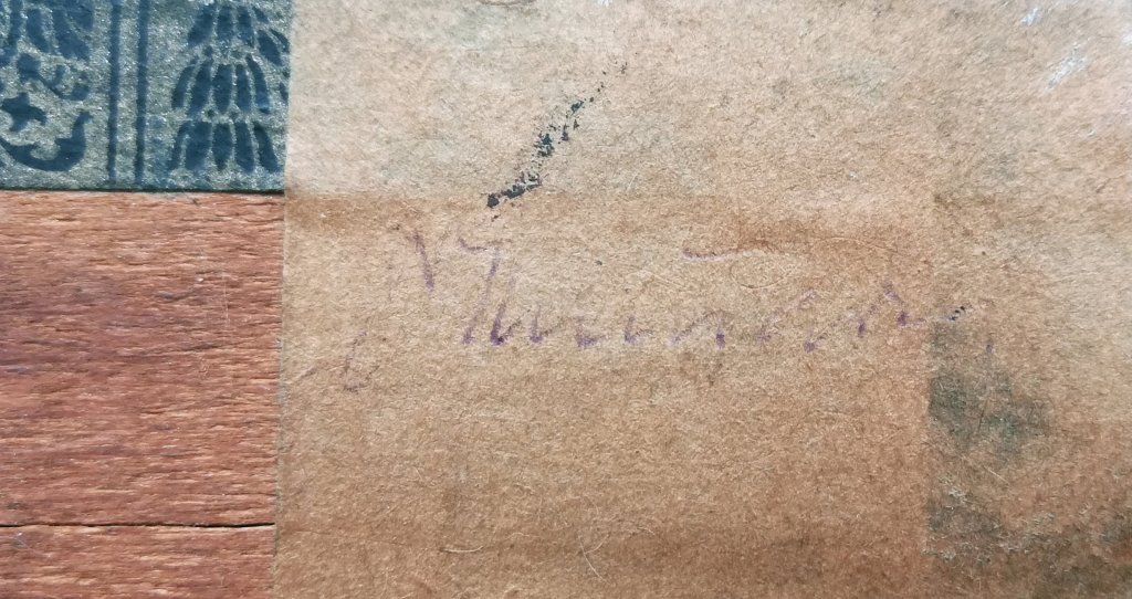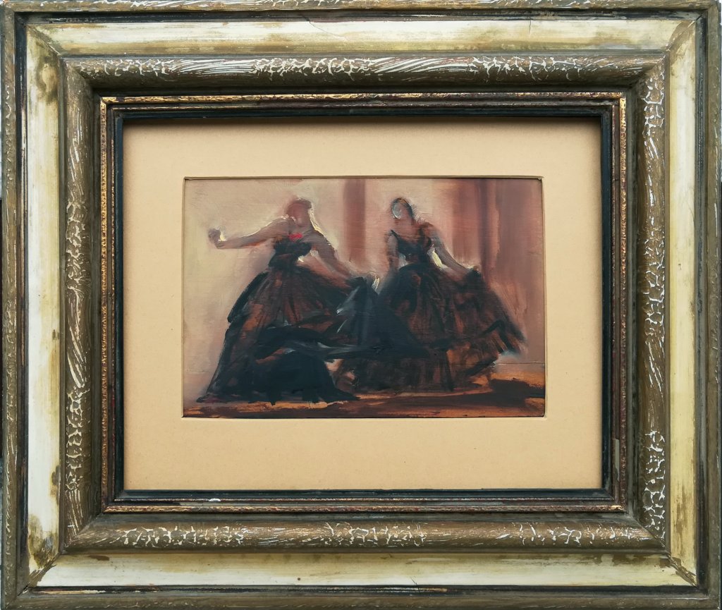 POPIS: Olej na dřevě, ve výřezu pasparty: 13 x 19 cm, nesignováno