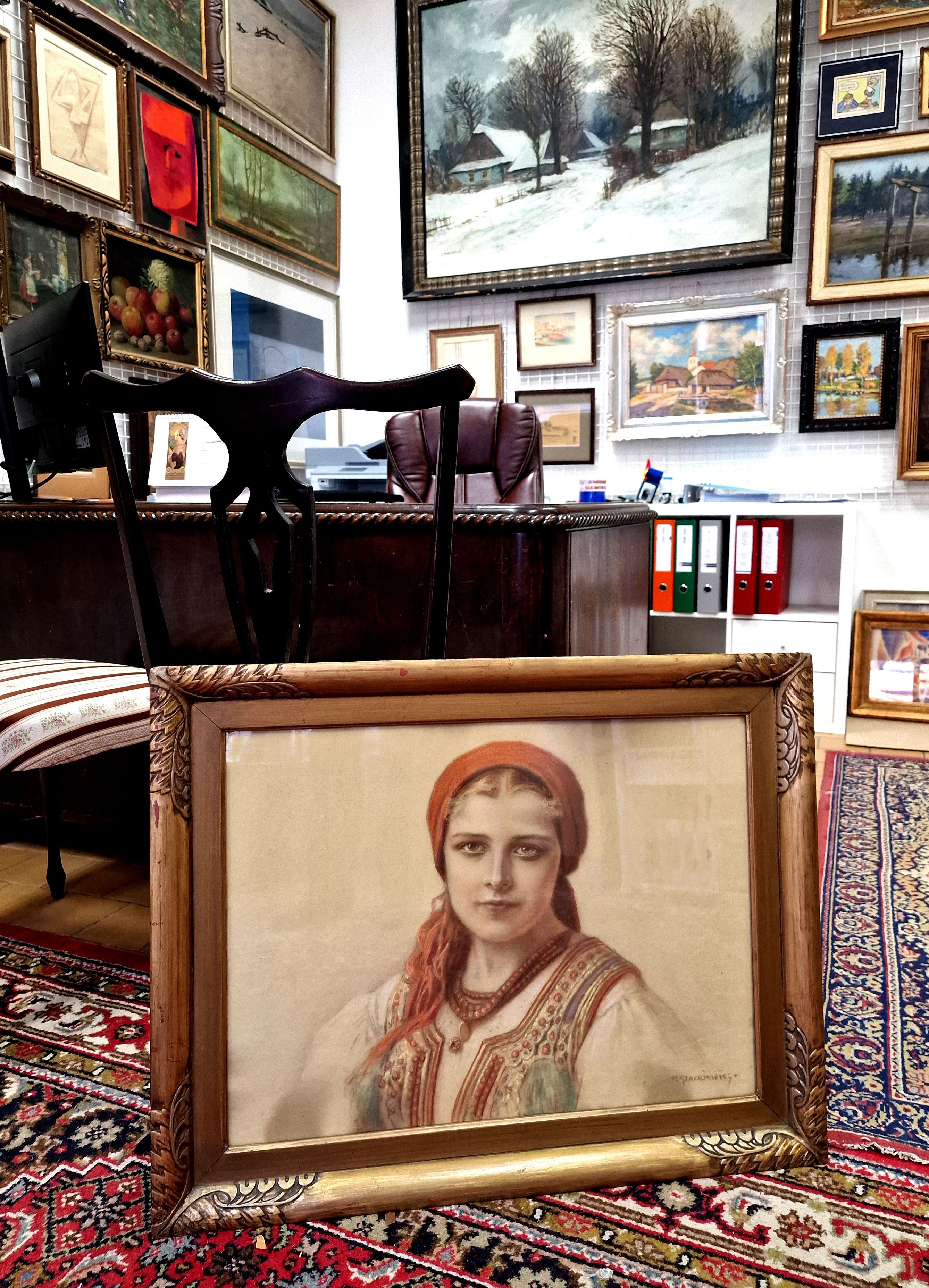 POPIS: Pastel, rozměr 46 x 62 cm, zaskleno. Za pobytu v Krakově autor vytvořil některá ze svých nejznámějších děl k nimž patří série představující slavnou modelku Zofii Paluchowou v tradičních lidových krojích. Z této série je i tento obraz