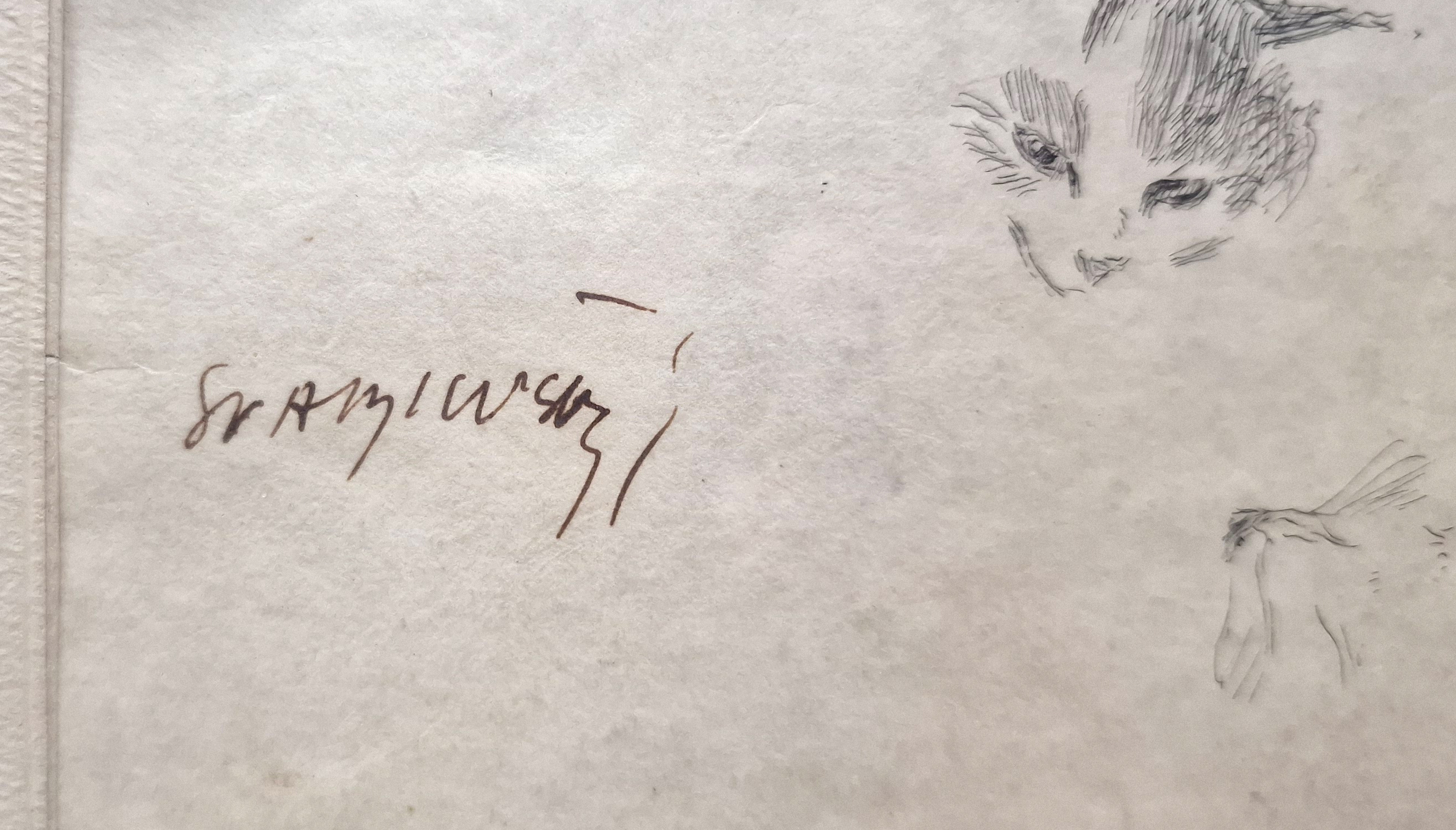 POPIS: Kresba tuší, rozměr ve výřezu 19 x 25 cm, zaskleno
