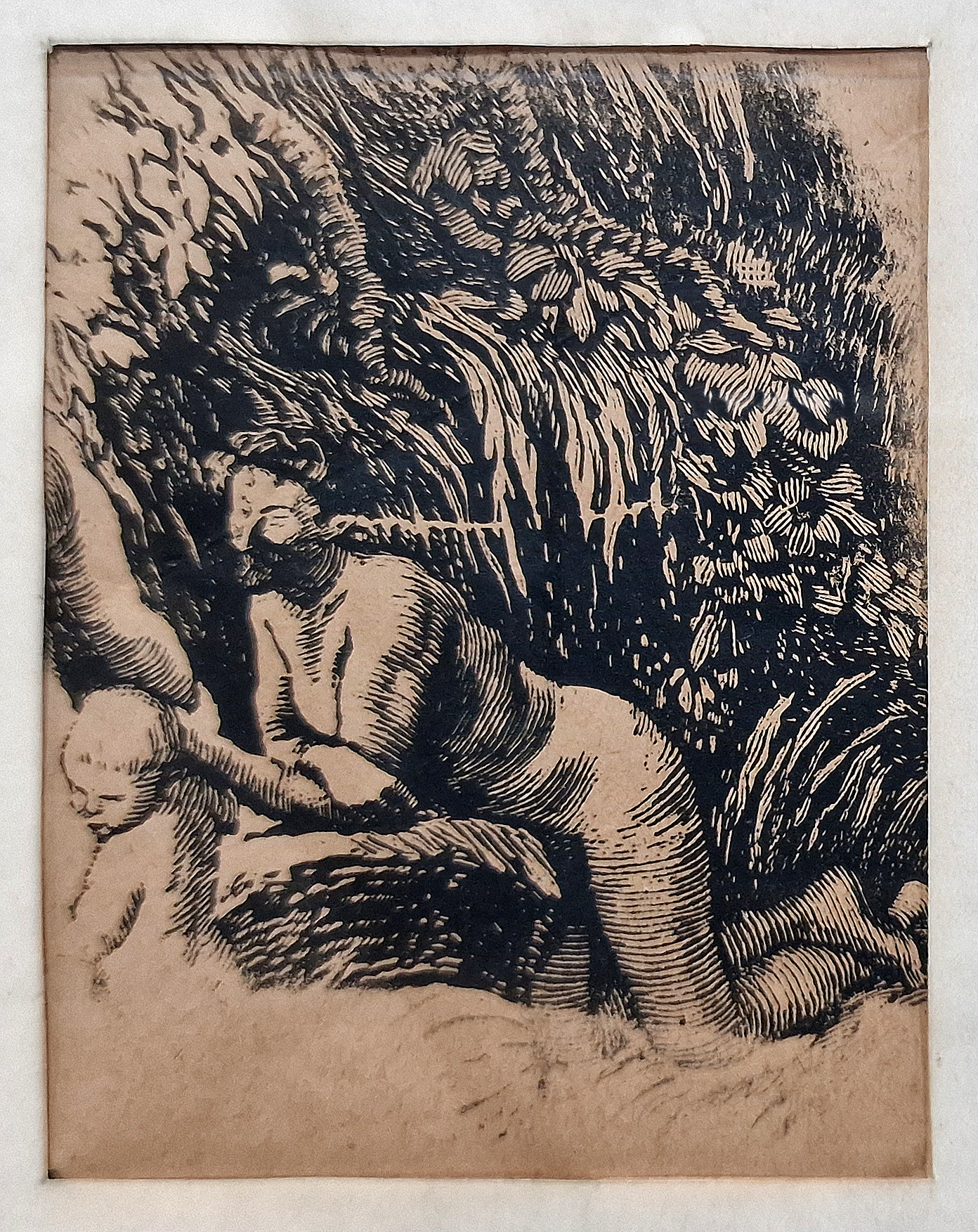 POPIS: Dřevoryt, rozměr ve výřezu 9 x 7 cm, zaskleno