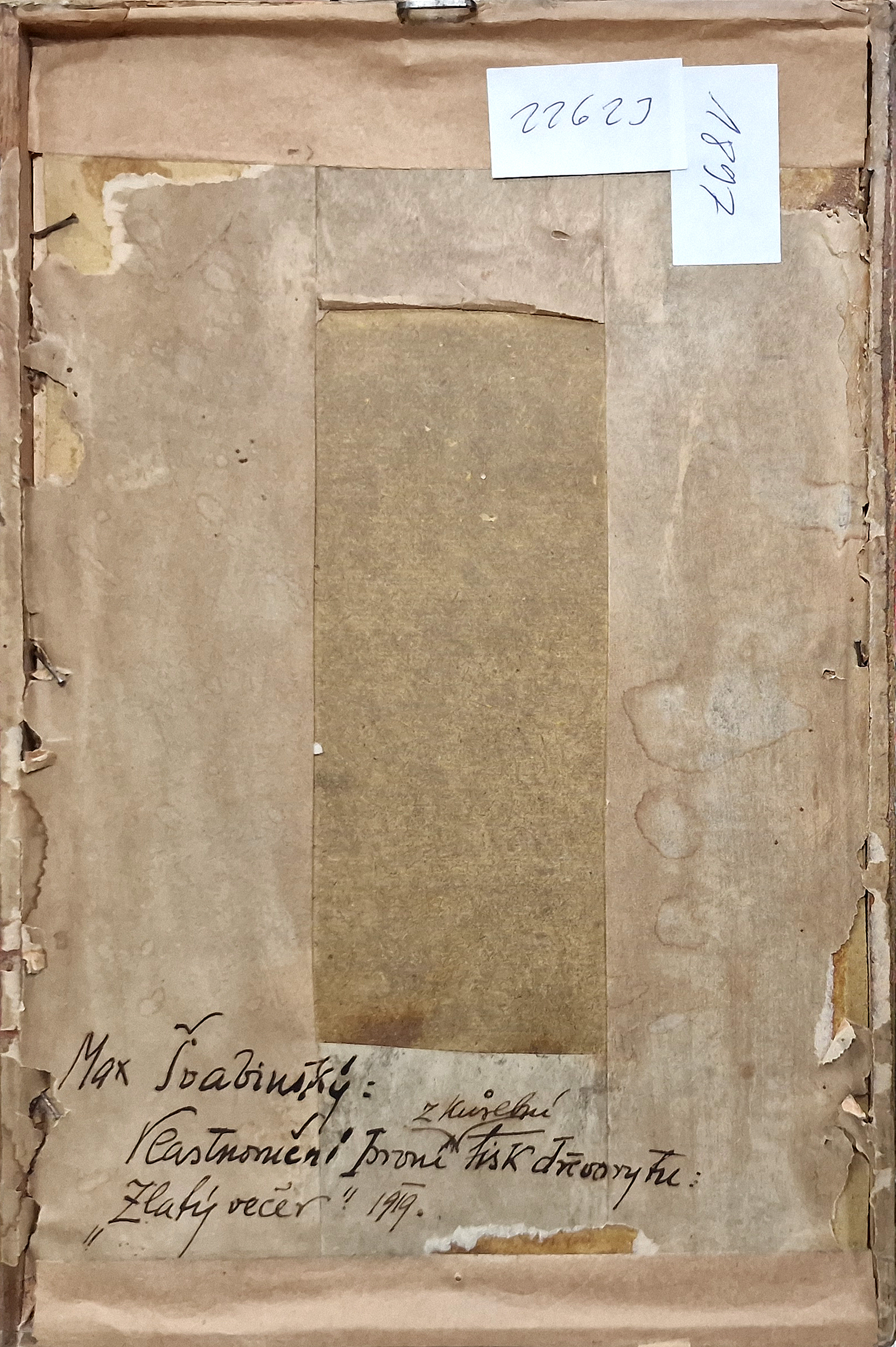 O AUTOROVI: Narodil se 17. 9. 1873 v Kroměříži a zemřel 10. 2. 1962 v Praze. Malíř, rytec, kreslíř, grafik, profesor na akademii výtvarných umění v Praze, celým jménem Maxmilian Theodor Jan Švabinský. Dětství strávil v okolí Ostravy. V Kroměříži studoval německou reálku, potom přešel do Prahy na malířskou akademii do školy k Pirnerovi. Finančně ho podporoval hrabě Jaroslav Thun. Byl obdivován pro neobyčejnou kreslířskou zručnost a rozmanitost grafických technik. Na jeho portrétech se můžeme setkat s mnoha významnými osobnostmi jeho doby. Společně s Janem Preislerem, Antonínem Slavíčkem a Milošem Jiránkem patří ke generaci umělců, kteří položili základy našeho moderního výtvarného umění 20. století. Byl mimo jiné zakládajícím členem SČUG Hollar, členem SVU Mánes, kuratoria Moderní galerie, vídeňského spolku umělců Hagenbund a Société nationale des Beaux-Arts v Paříži. Dále byl doctor honoris causa Masarykovy university v Brně, rytířem Řádu čestné legie, profesorem C. k. Akademie umění v Praze, osmkrát jejím rektorem, doživotním čestným profesorem Akademie výtvarných umění v Praze, nositelem Řádu republiky (1958), akademikem-korespondentem Real Academia de Bellas Artes v Madridu a laureátem ceny italské vlády za kolekci leptů. V průběhu života se věnoval mnoha technikám, jako je olejomalba, perokresba, litografie, mozaika, akvarel, mezzotinta, lept, pastel, dřevoryt, návrhy na vitráž, kresba suchou jehlou, rudkou, černou křídou, tužkou, uhlem. Jeho umělecký rejstřík tvořily portréty, krajinomalba, ilustrace, erotické náměty, plakáty, exlibris, návrhy gobelínů, vitráží, poštovních známek a bankovek.