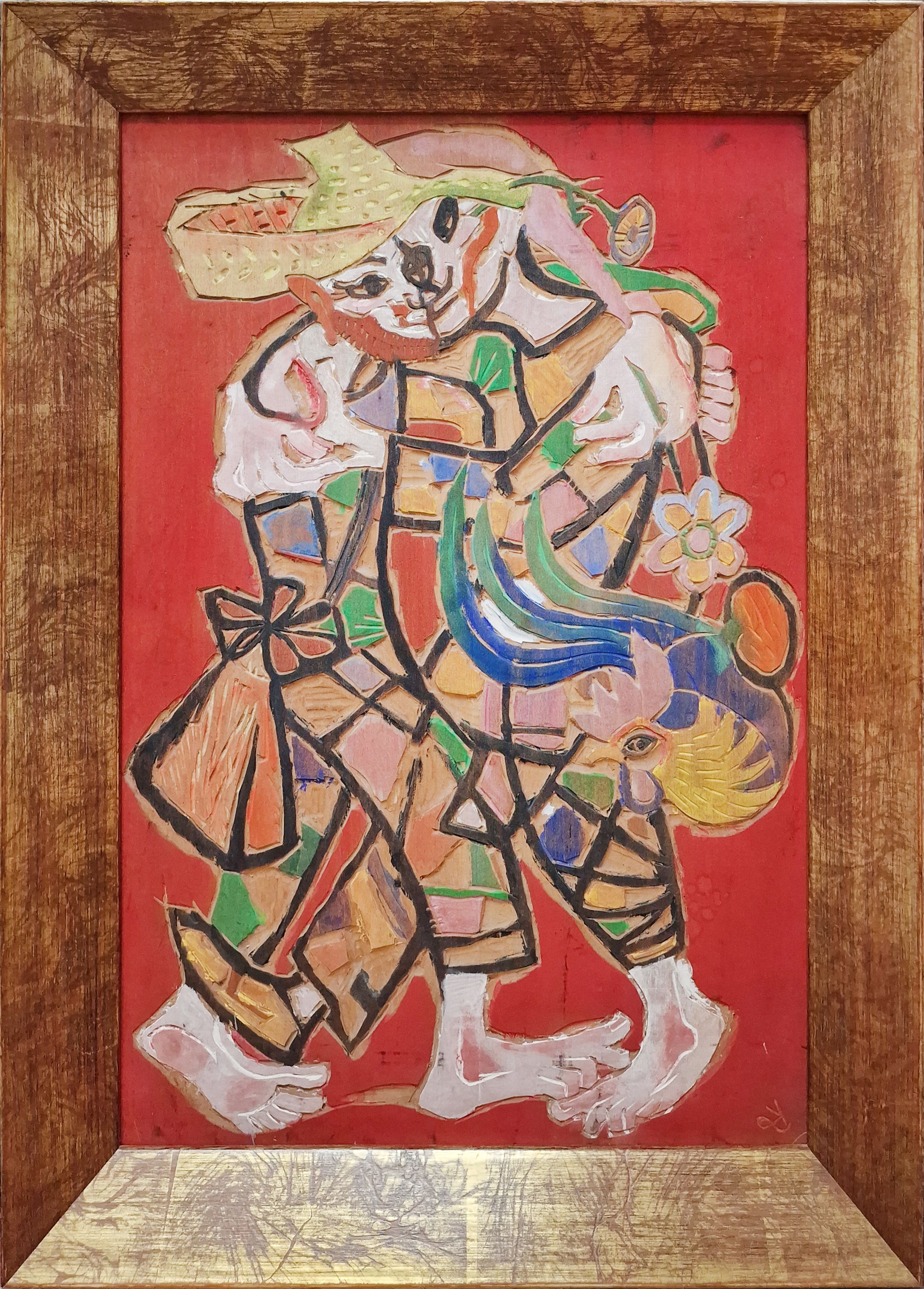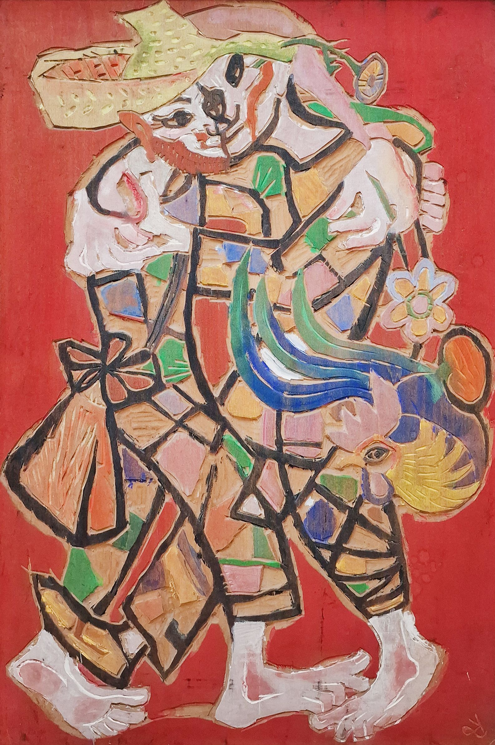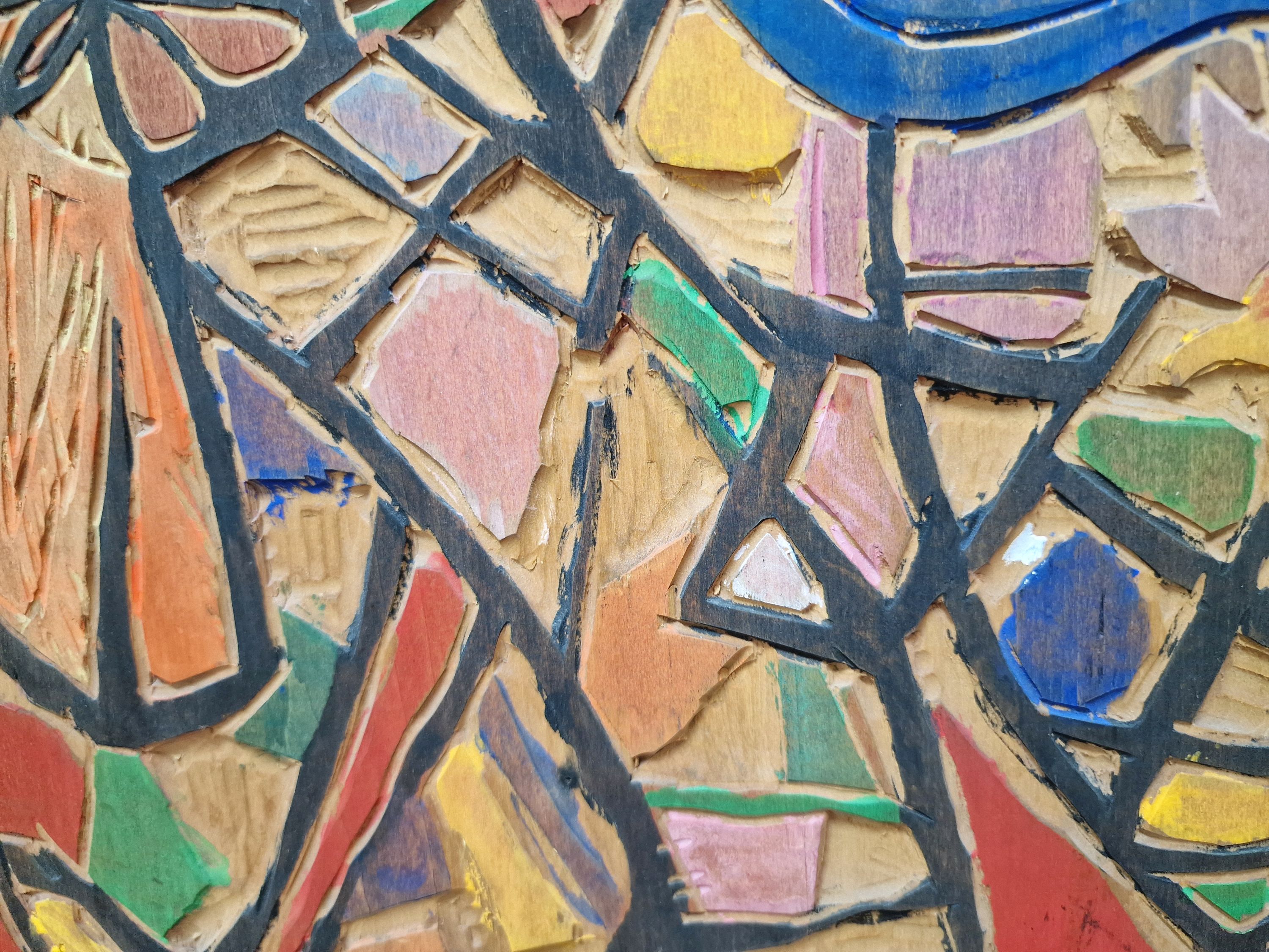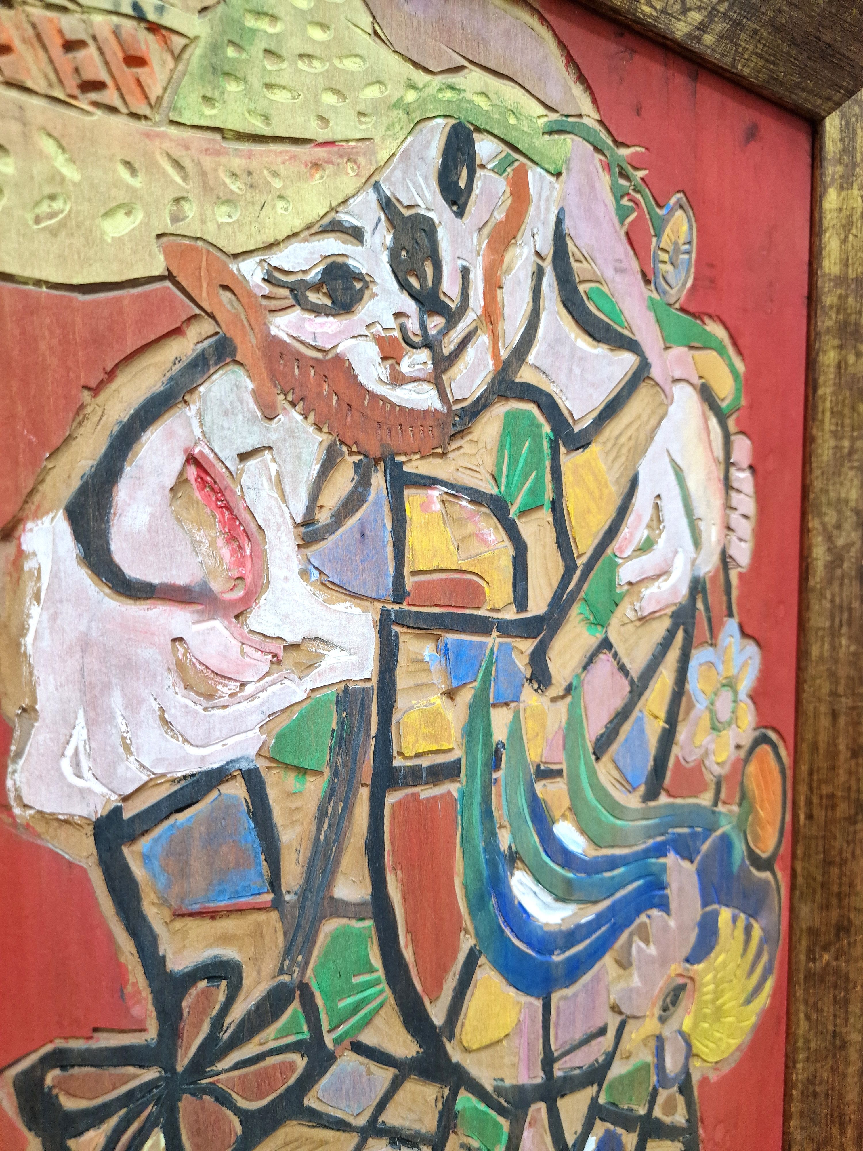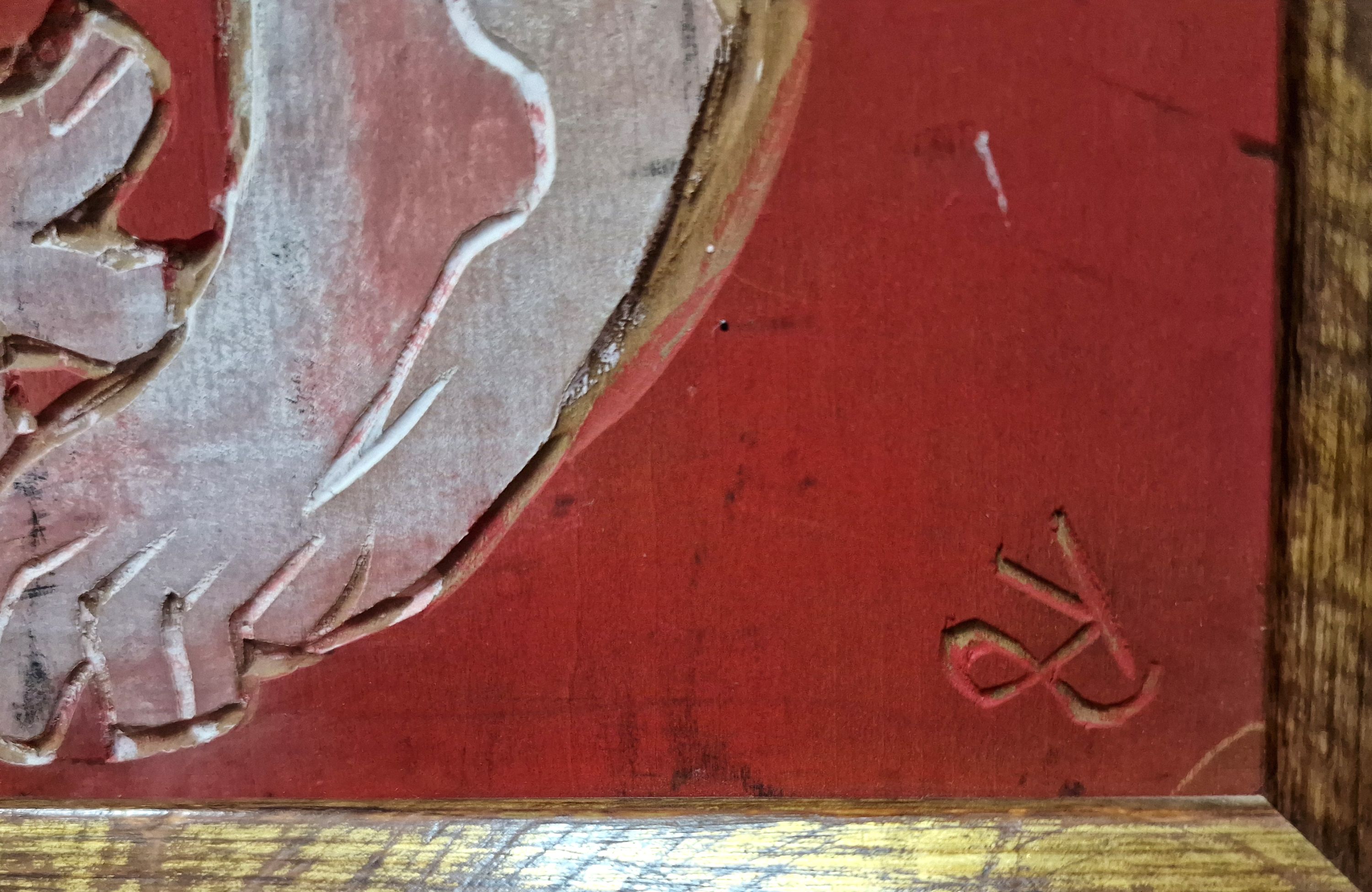 POPIS: Malba na dřevořezbě, rozměr 58 x 37,5 cm