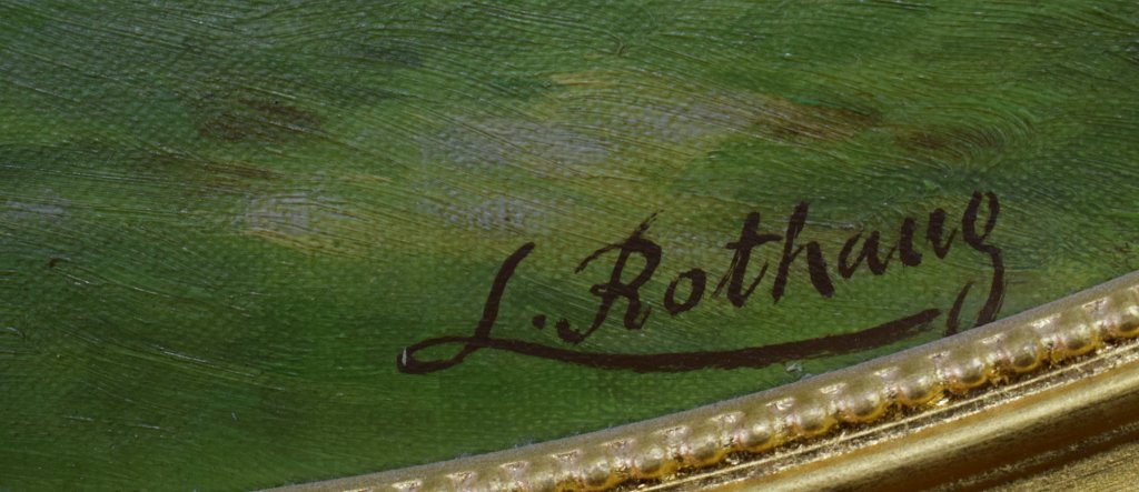 POPIS: Olej na plátně - nalepeno na lepence, rozměr 57 x 69 cm, signováno vpravo dole L. Rothaug