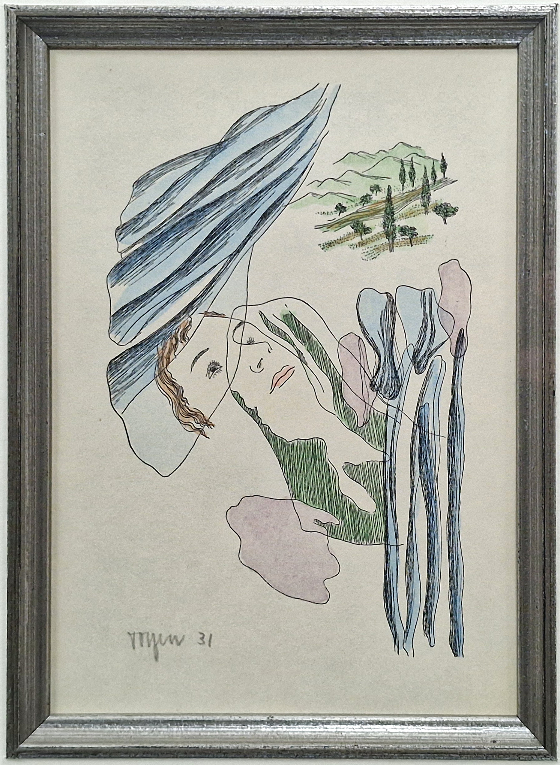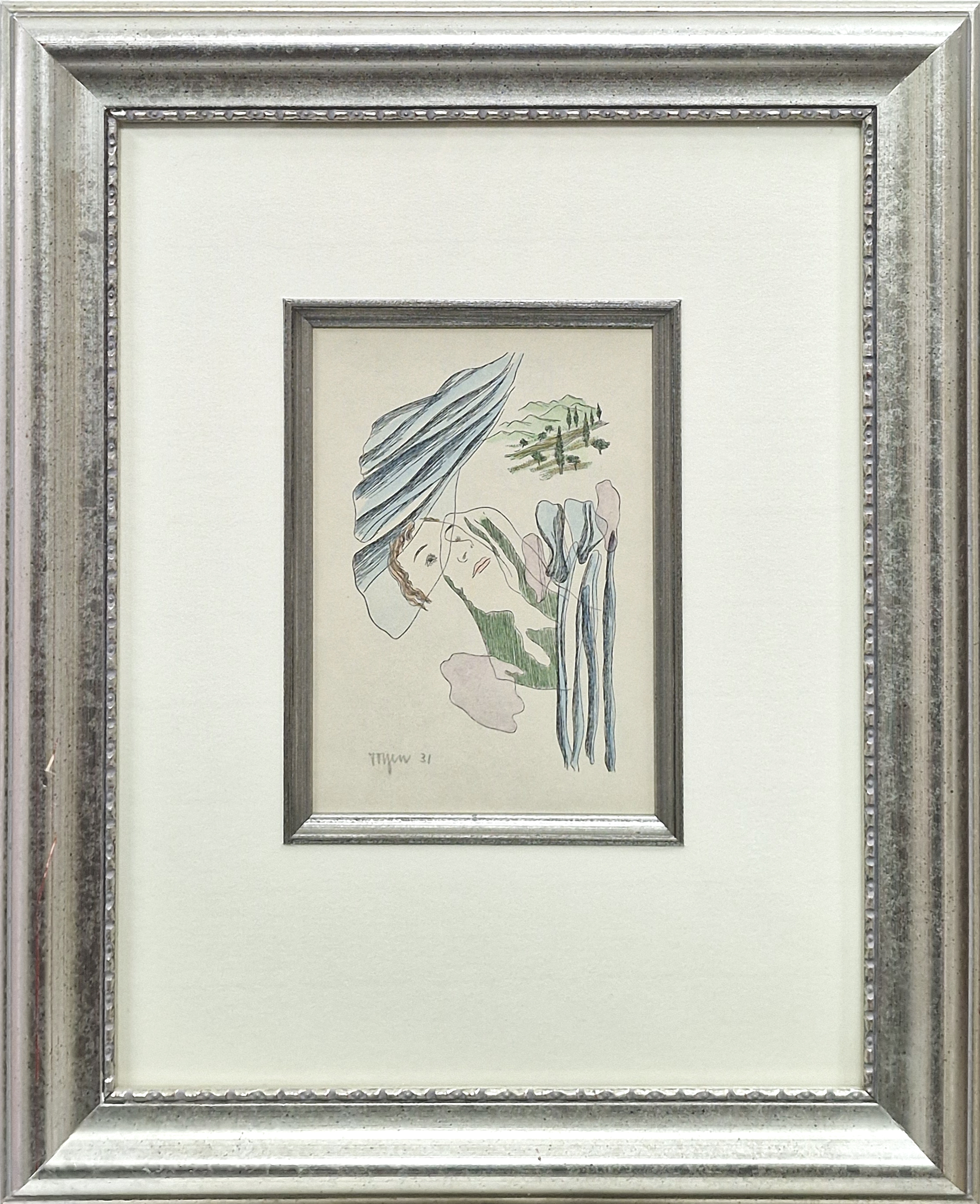 POPIS: Kolorovaná zinkografie, rozměr ve výřezu 15,5 x 10 cm, zaskleno