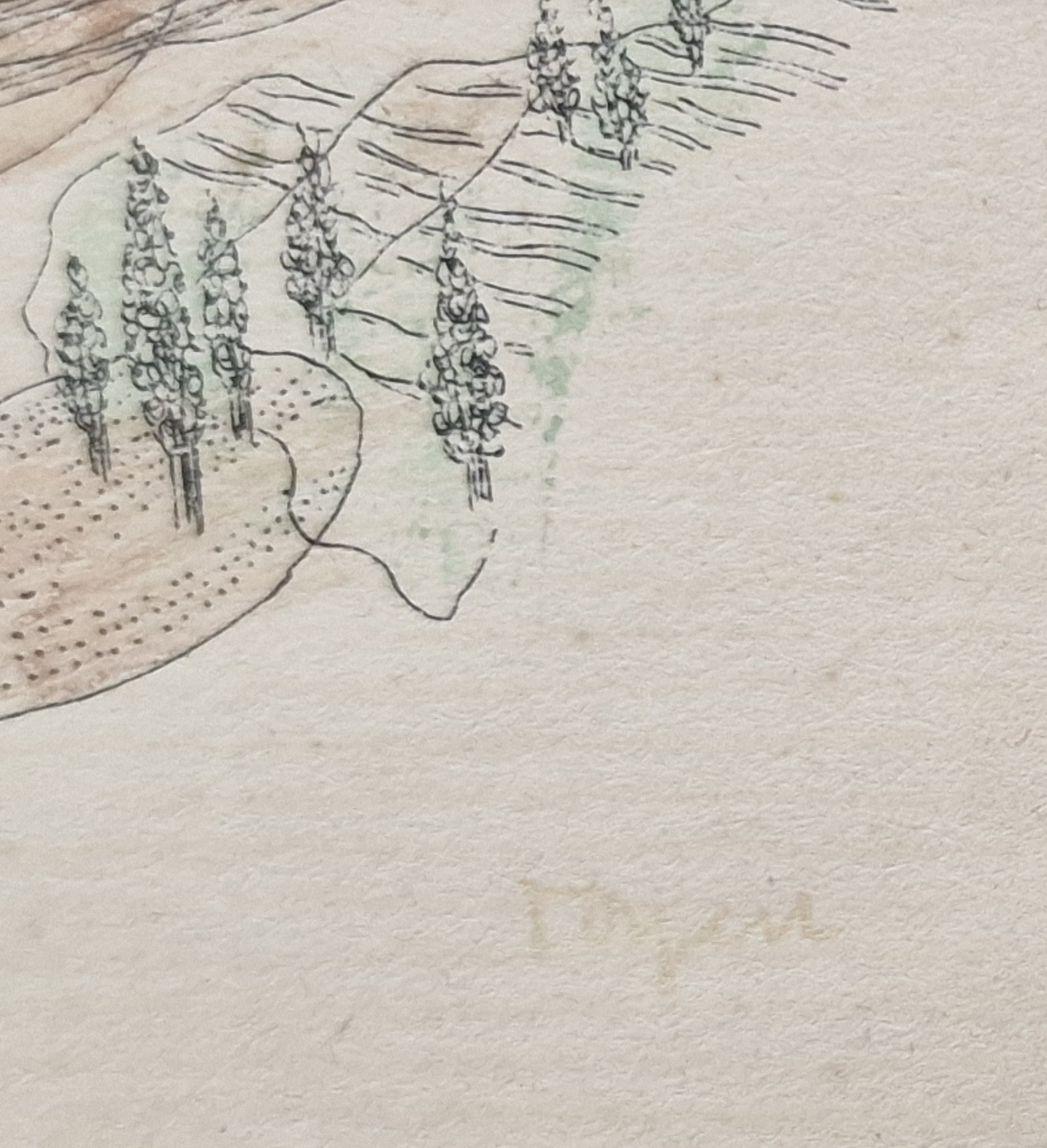 POPIS: Kolorovaná zinkografie, rozměr ve výřezu 16,5 x 10,5 cm, zaskleno