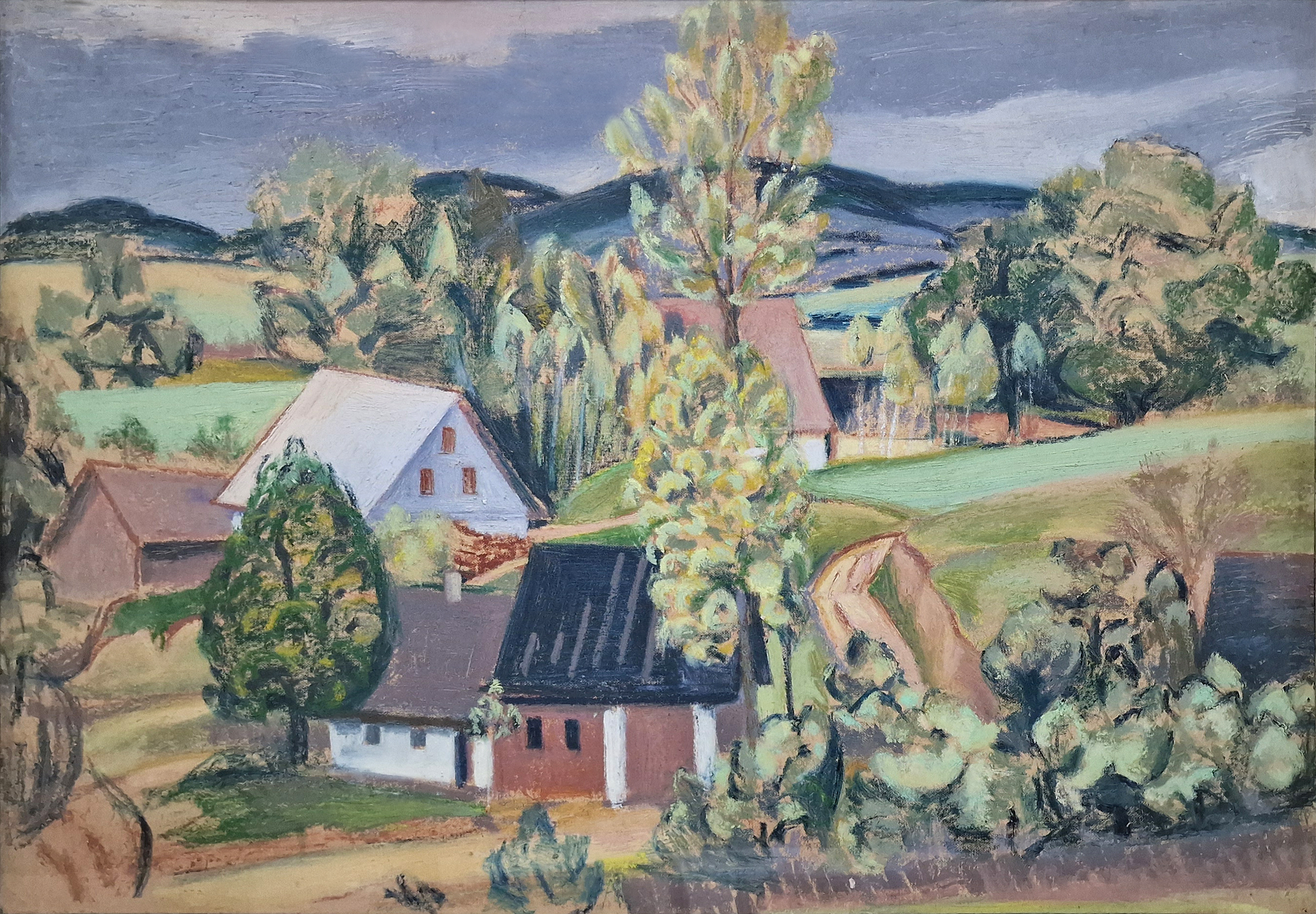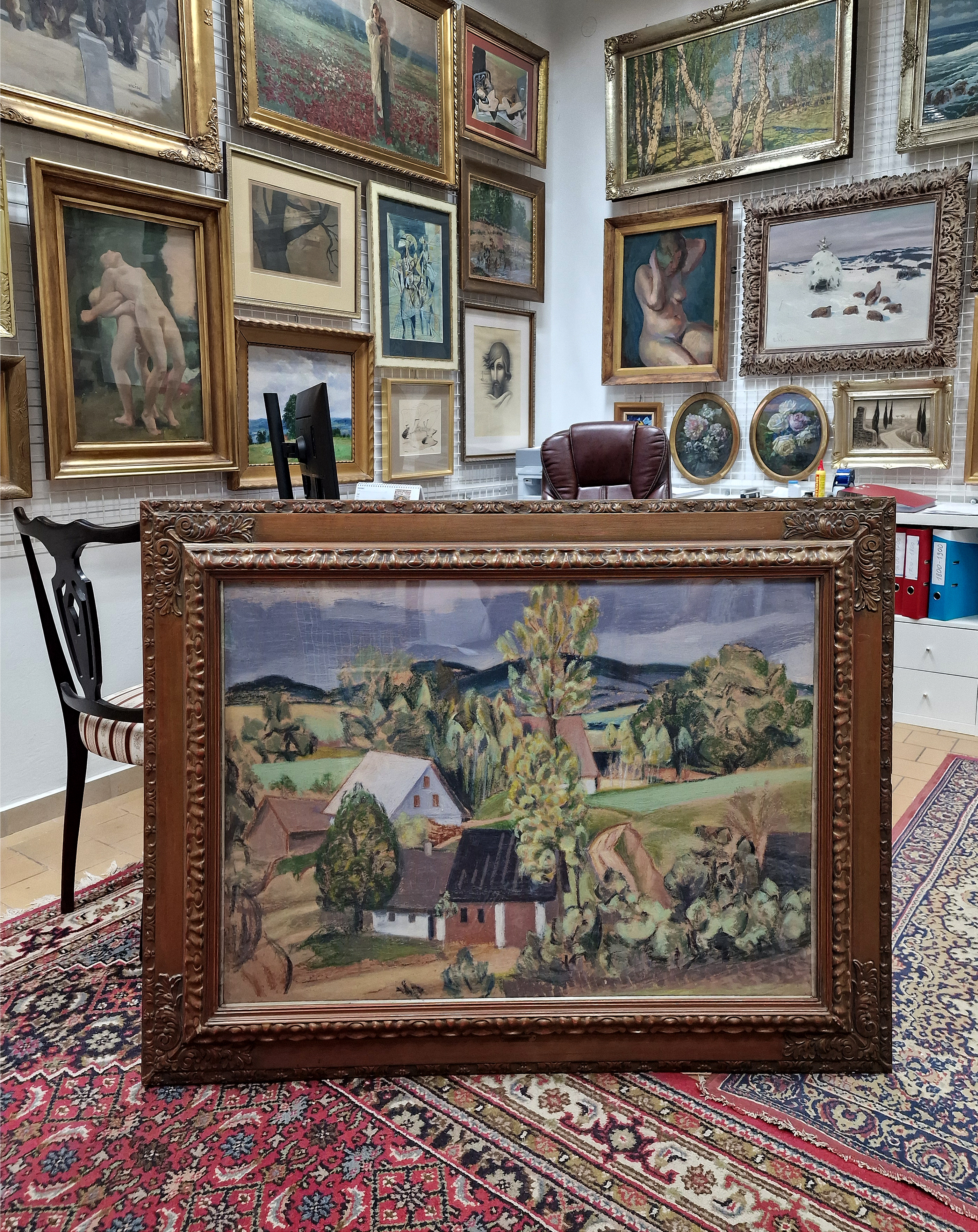 POPIS: Olej pastel na plátně, rozměr 73 x 103 cm, nesignováno. Posouzeno při konzultaci prof. J. Zeminou a Mgr. M. Dospělem Ph.D.