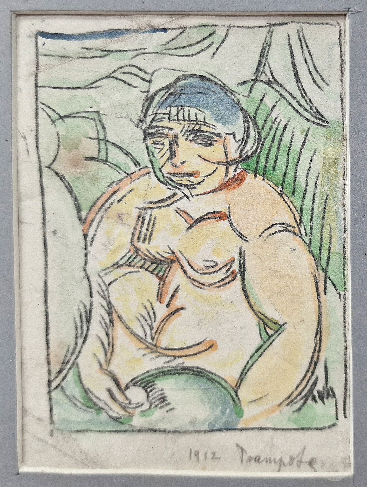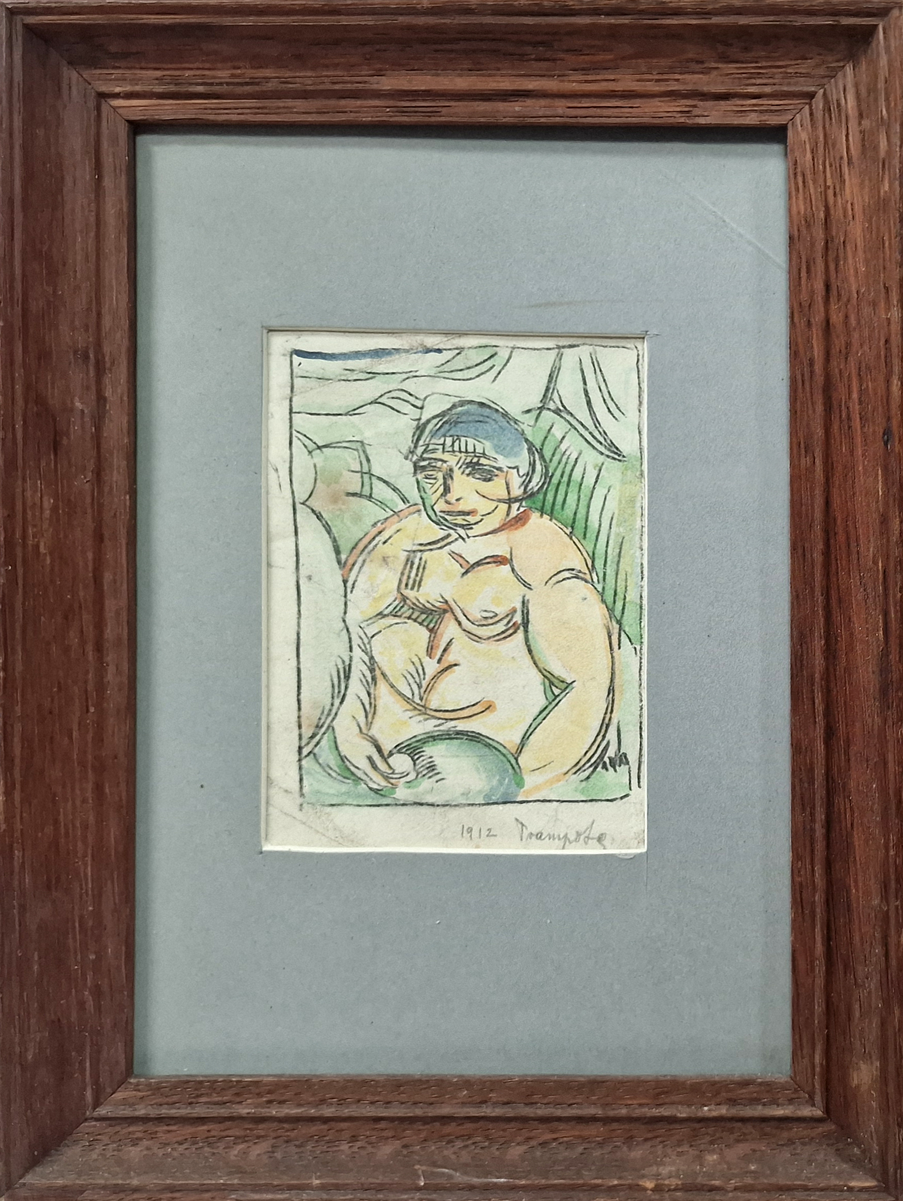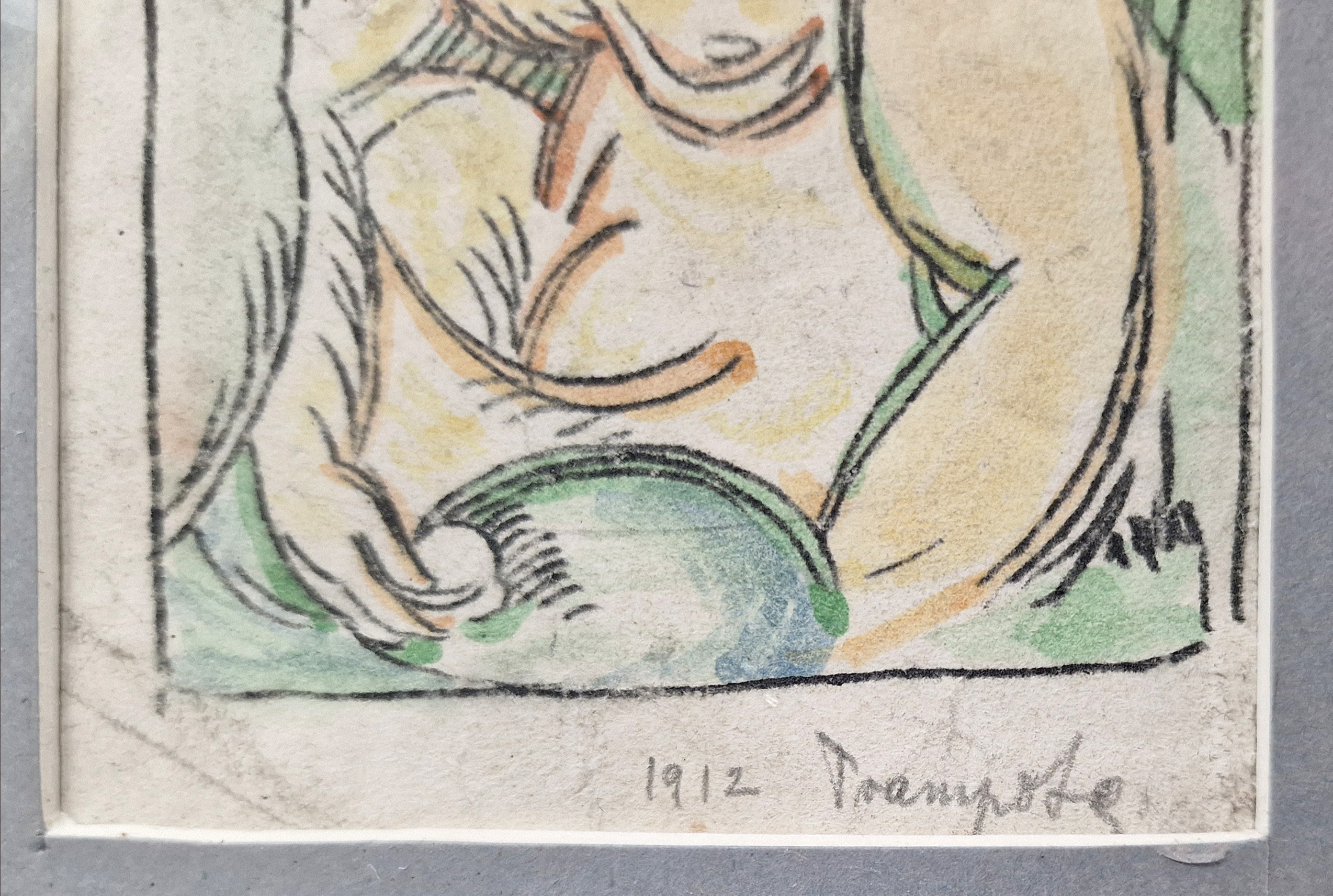 POPIS: Tuš + akvare, rozměr ve výřezu 11 x 8 cm, zaskleno