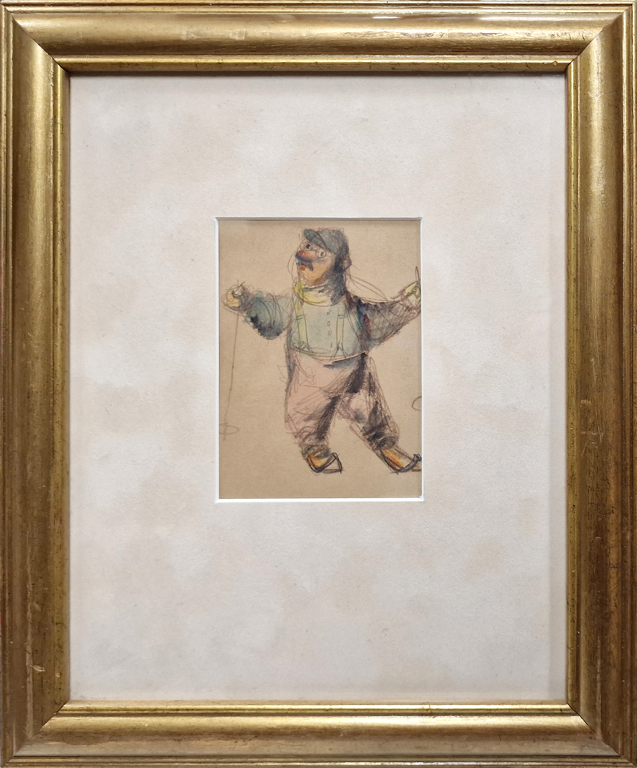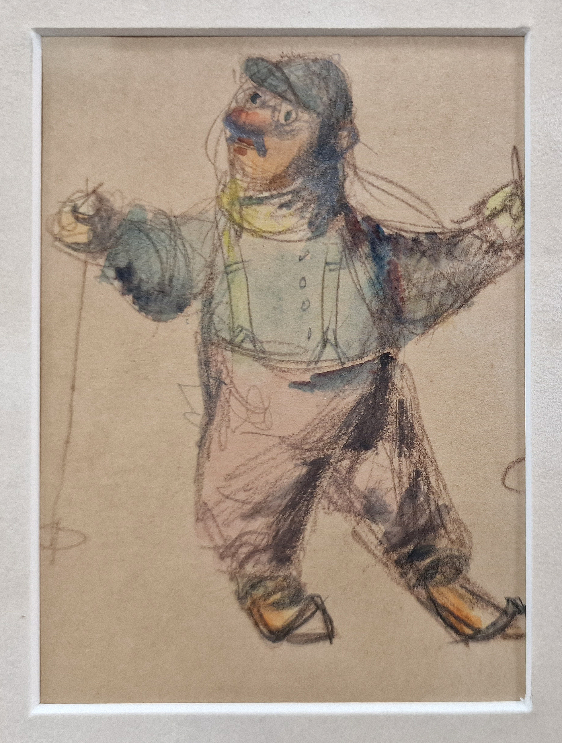 POPIS: Tužka + akvarel, rozměr ve výřezu 11 x 8 cm, zaskleno