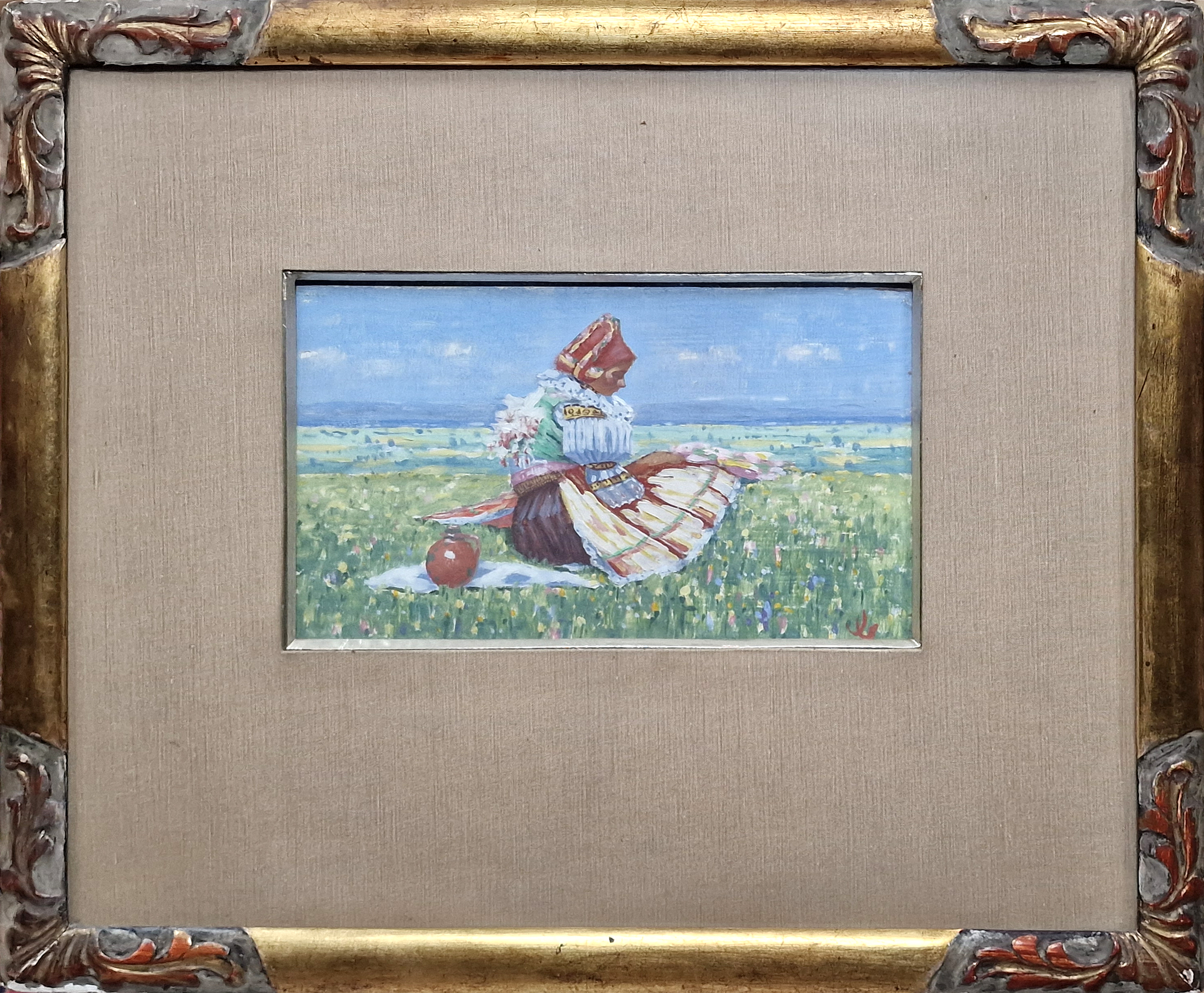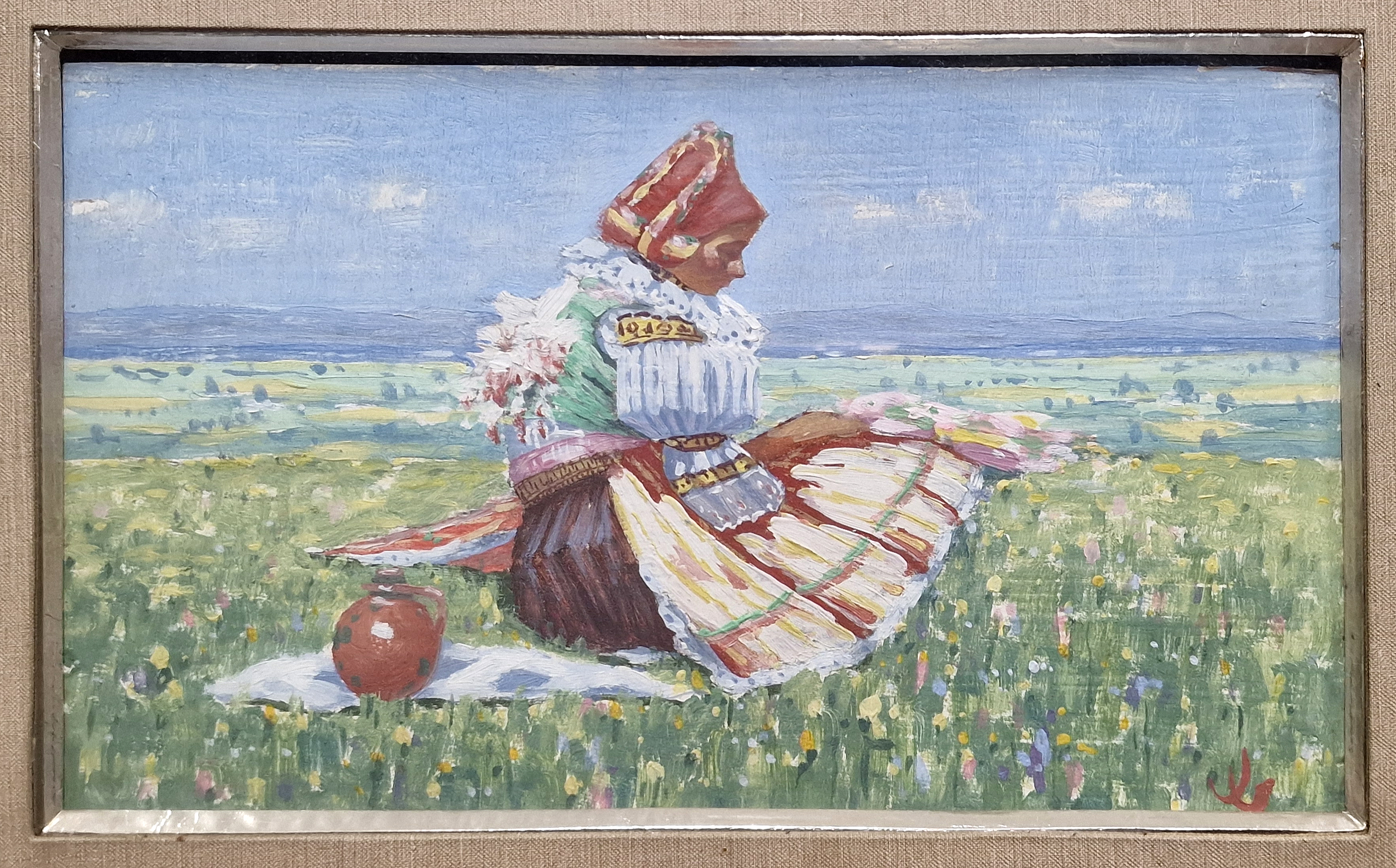 POPIS: Olej na dřevě, rozměr ve výřezu pasparty 17 x 28 cm, zaskleno