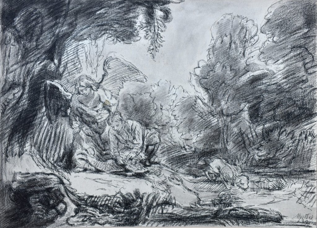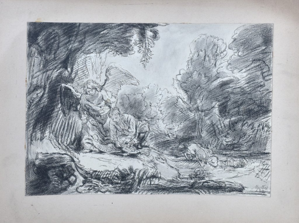 POPIS: Kresba uhlem, rozměry: 26 x 36 cm