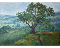 POPIS: Olej na lepence, rozměry ve výřezu pasparty: 23 x 33 cm , zaskleno. Okolo roku 1910. Plenérová Mařákova škola v ukázce jednoho ze zřídka se vyskytujících prvních absolventů. Malba je v původním adjustaci. Konzultováno a posouzeno prof. J. Zeminou