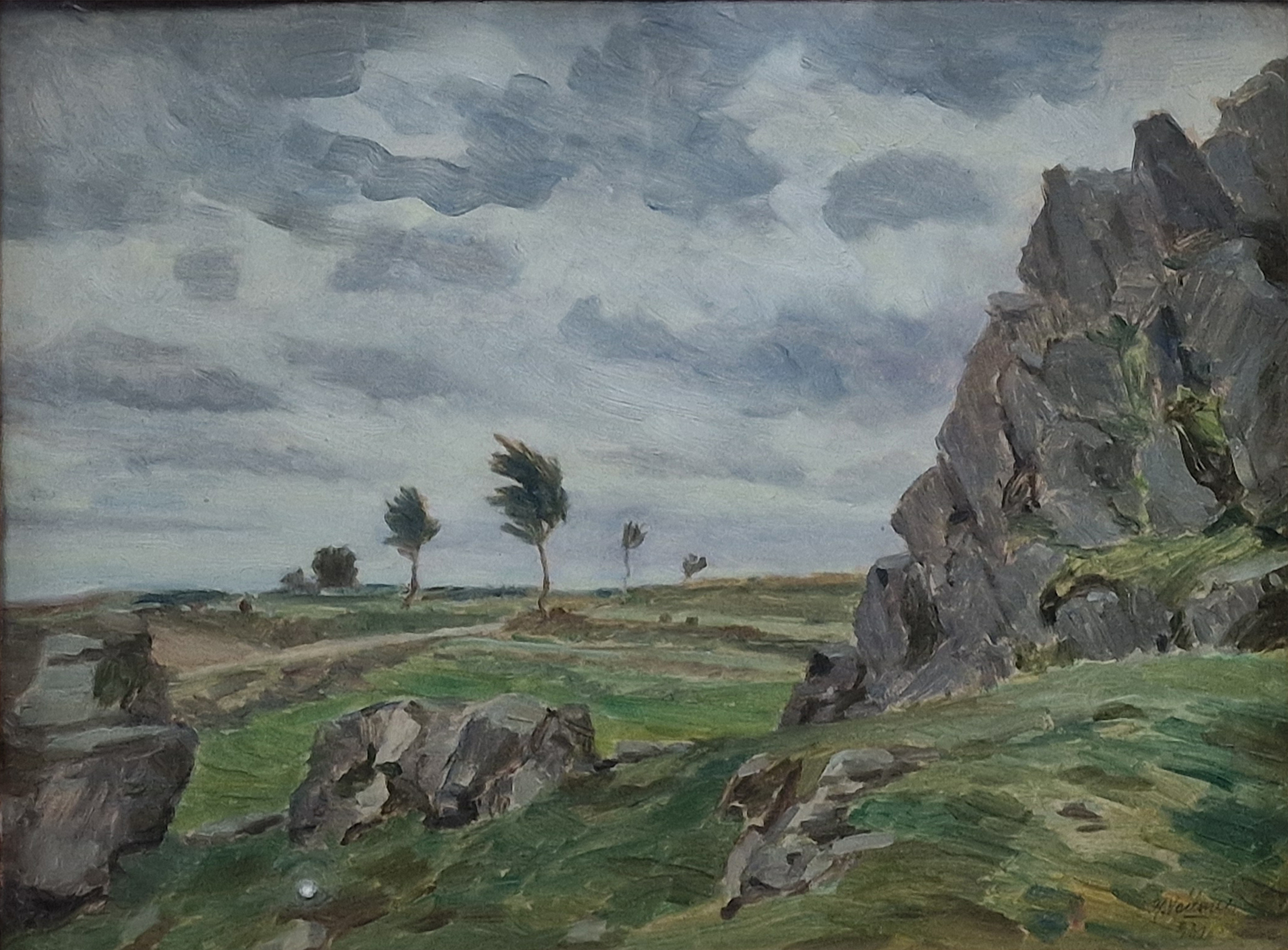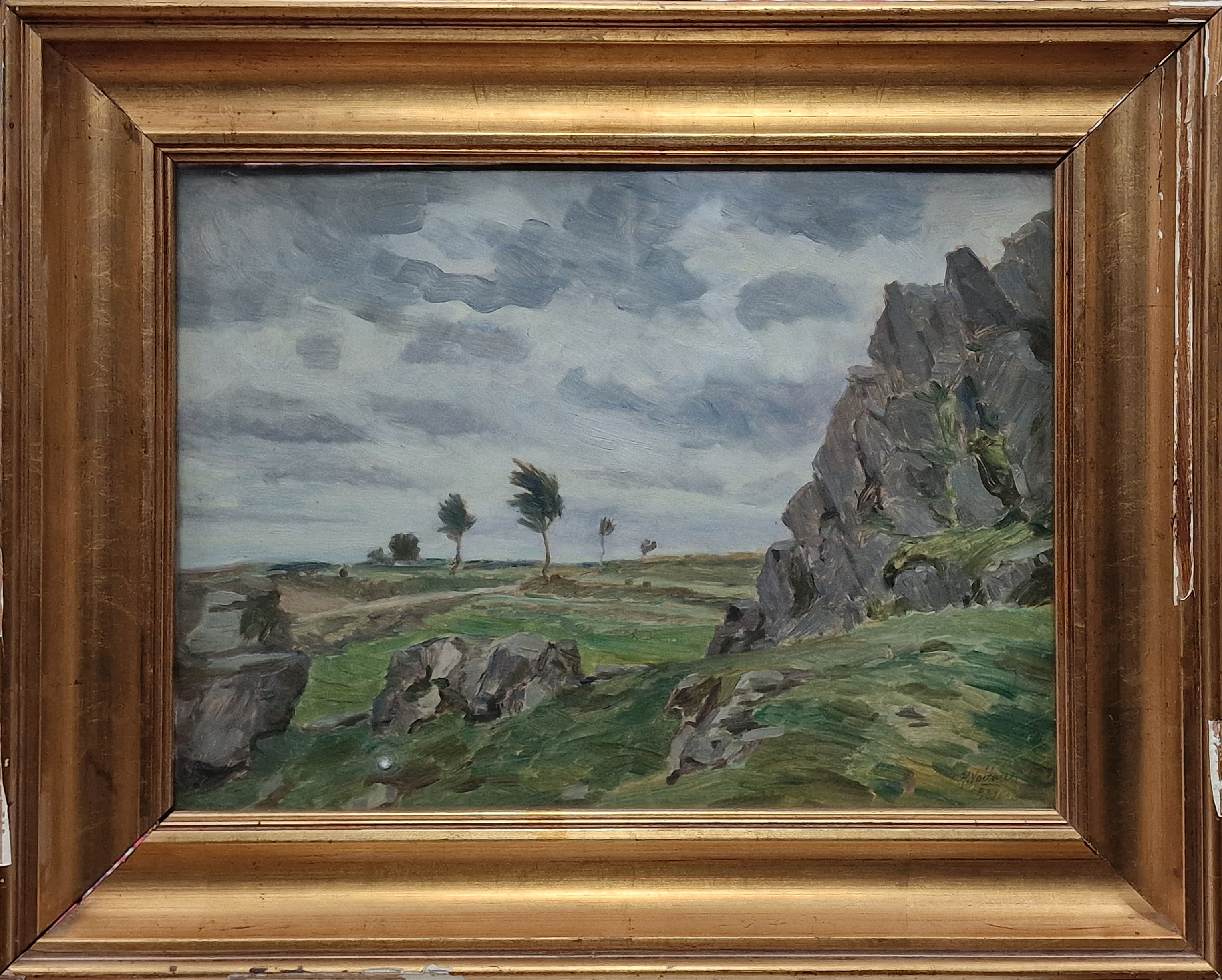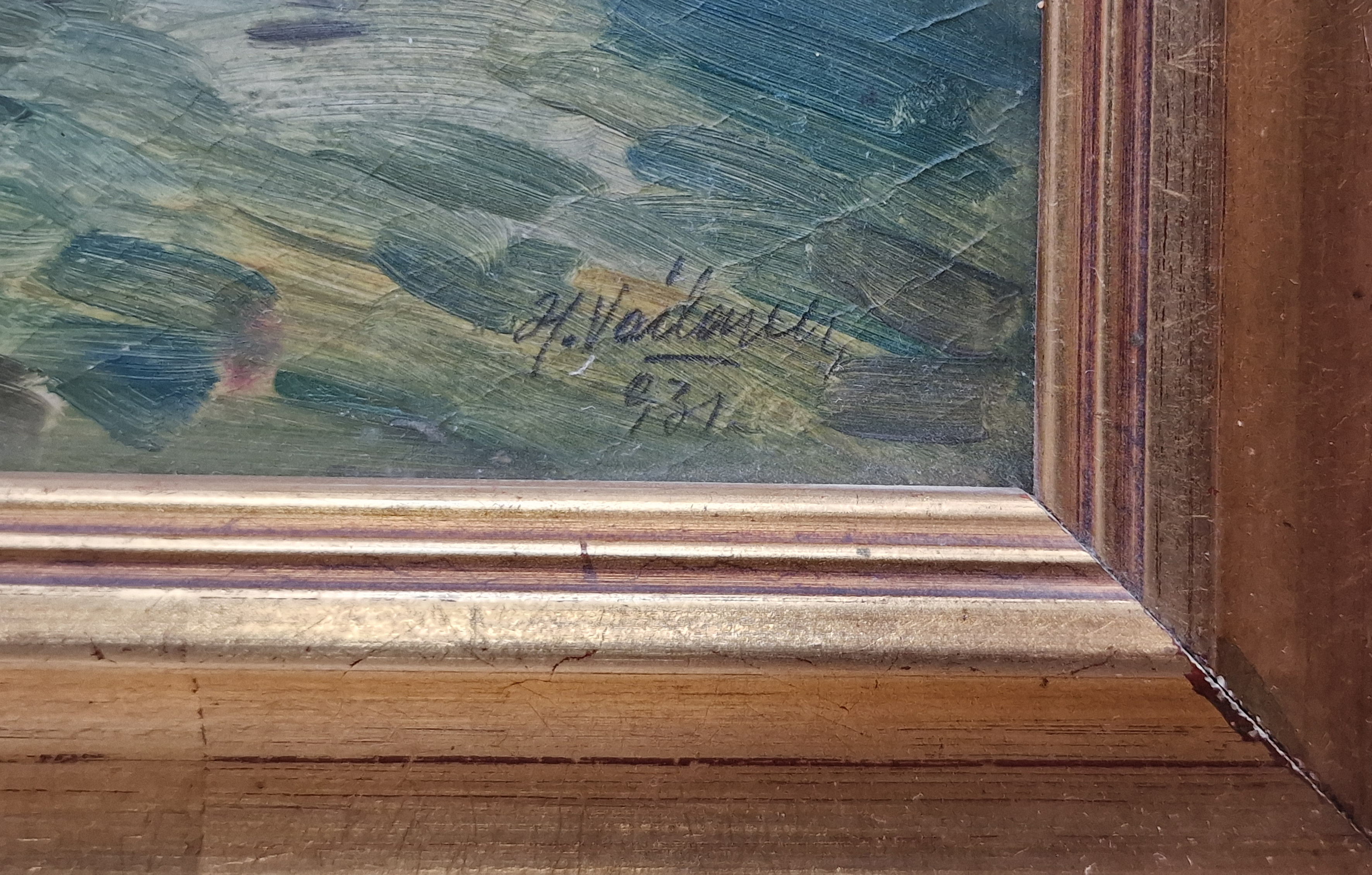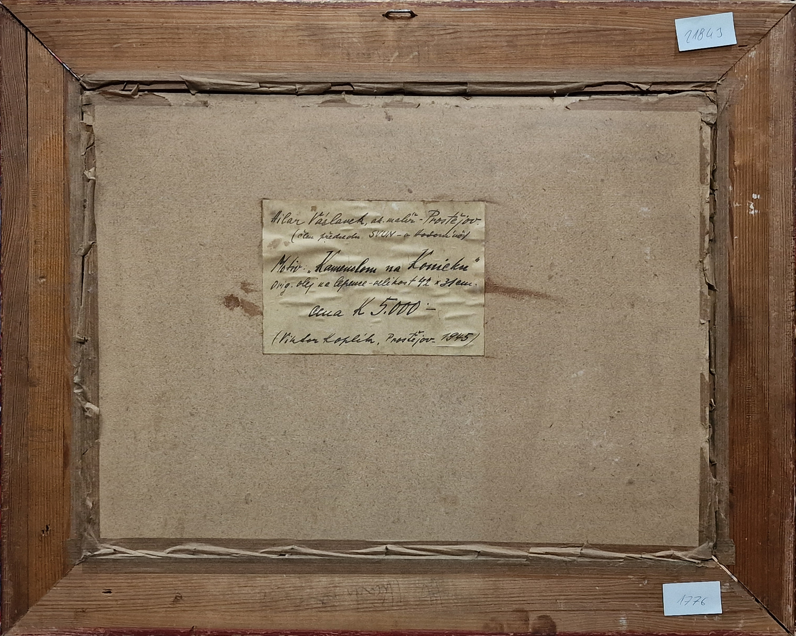 POPIS: Olej na lepence, rozměr 31 x 41,5 cm, zaskleno, rám poškozen
