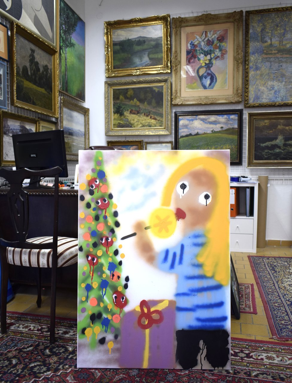 POPIS: Sprej na plátně rozměr 100 x 70 cm