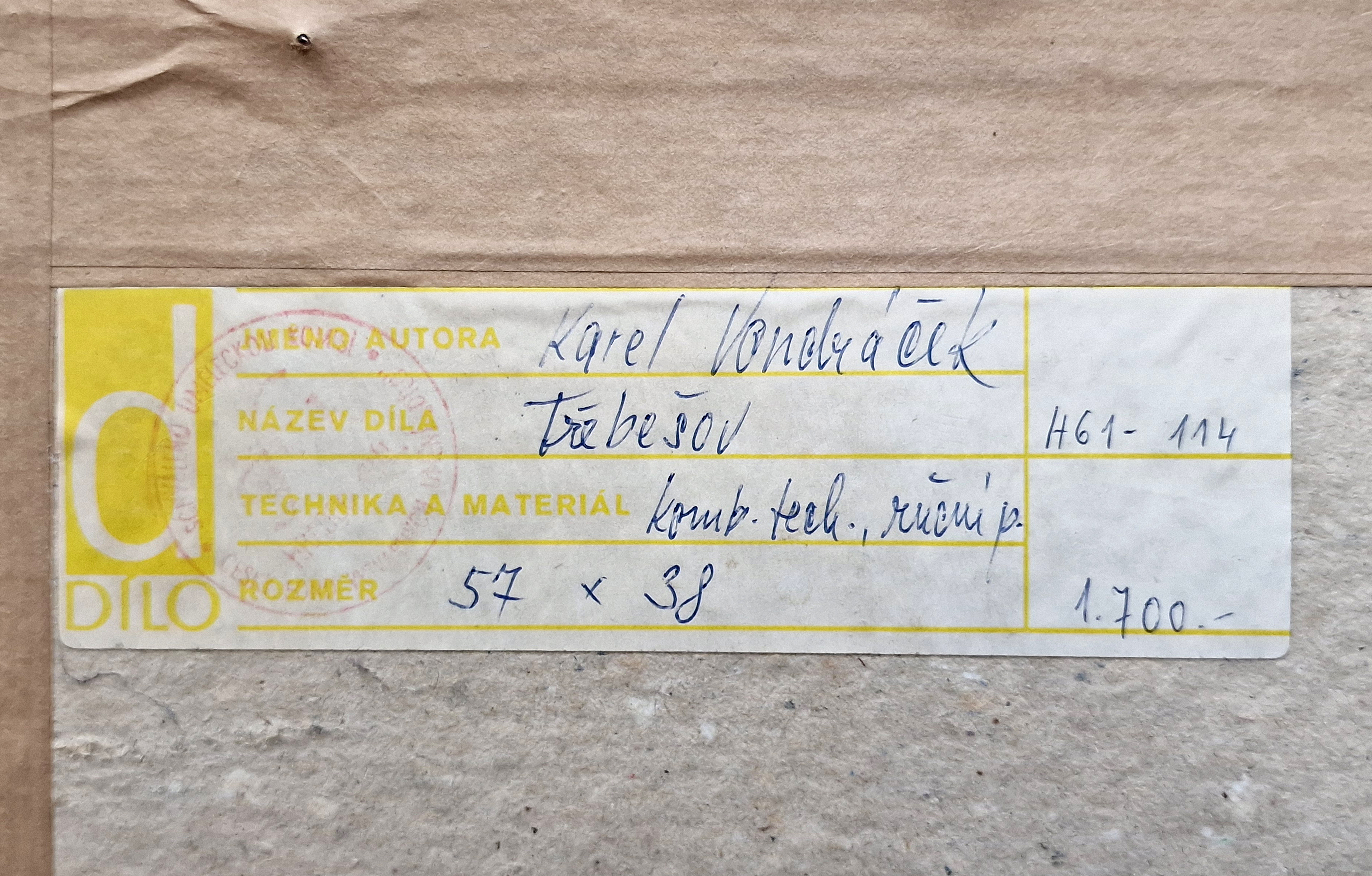 POPIS: Kombinovaná technika na ručním papíru, rozměr 57 x 36 cm, zaskleno