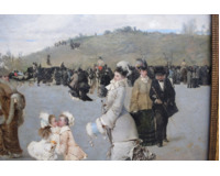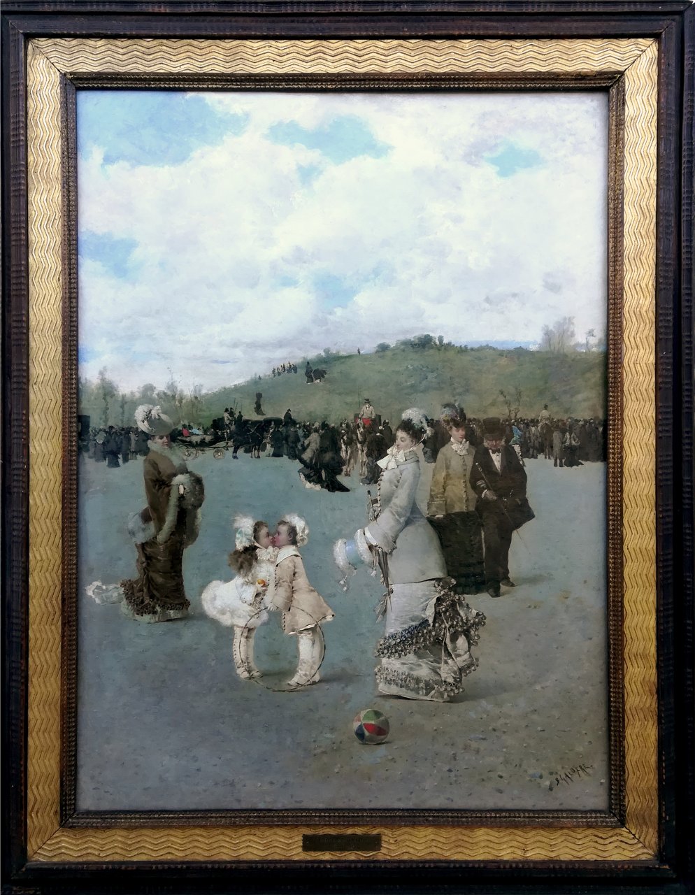 O AUTOROVI: Baldomero Galofré y Jiménez (25. Května 1845 – 26 Června 1902 Španělský malíř Baldomero Jiménez Galofré nebo Galofre Bartolomeu se narodil v městě Reus, Španělsko, dne 24. května 1849. V dětství byl žákem slavného katalánského malíře Ramón Martí Alsina (1826-1894) a později následovník Mariano Fortuny , Absolvent prvního ročníku malířů španělského Akademii výtvarných umění v Římě spolu s dalšími velkými malířů devatenáctého století, jako například: Francisco Pradilla, Casto Plasencia, Alejandro Ferrant, Manuel kastilské a Jaime Morera. Od roku 1870 byl ilustrátorem časopisu španělský a americké osvícení, a v roce 1874 byl penzionován ve španělském Akademii výtvarných umění v Římě krajinomalby, do centra, kde zůstal až do roku 1884, a později podal ji dlouhé období během jeho života. Během svého prvního pobytu tam se stal jedním z nejvěrnějších stoupenců Mariano Fortuny, jehož jasné světlo v jeho obrazech přijmul a pokračoval , nové vnímání krajiny ho naučil jeho první učitel, Martí Alsina. Jeho první výstava byla v Barceloně "Exposició de Belles Arts del 1866", kde představil svou práci "Els traginers" (The Porters). Později se podílel na barcelonských výstavách v letech 1870 a 1872, stejně jako na výstavě v Zaragoze v roce 1868, kde představil řadu krajin, které zobrazují kopce Montjuïc a Vallvidrera , a některé námořní malby. Jeho akvarely získaly stříbrnou medaili v expozici v Salamance . Od roku 1870 do roku 1882 žil v Římě na penzionu poskytovaném první republikou , zatímco studoval na "Academia de Bellas Artes de Roma", pobočce Real Academia de Bellas Artes de San Fernando . V této době se dostal pod vliv Mariá Fortuny , ale zachoval si vlastní styl; zejména jeho použití barvy. Jeho osobní výstava v Barceloně v roce 1884 byla velmi populární. Narcís Oller chválil jeho smysl pro naturalismus a dovednosti v malování historie. Na výstavě v Madridu v roce 1890 jedna z jeho prací koupila královna María Cristina . V roce 1886 se stal pravidelným přispěvatelem k Sala Parés . Jeho závěrečná práce "El cavall més valent" zůstala nedokončena při jeho smrti, ale prodávala za 20 000 peset . Po svém návratu do Španělska vymyslel monumentální dílo, které plánuje publikoval pod názvem malebné Španělsko, pro který pracoval tvrdě v mnoha skic a studií, které shromážděných během svých cest po celé zemi. A žánrové scény dodal, pak prominentní malování krajiny a mořské krajiny a mnoho akvarely a pastely, technik, který prokazuje svou dovednost a zručnost, díla radostné a intenzivní palety a živé tóny, podání měkké a elegantní. Zemřel v Barceloně, dne 26. července 1902. Ten stejný rok, obchodník s uměním Josep Artal uspořádala výstavu hold v Buenos Aires. Velký atlas malby. ISBN: 978-84-7137-121-8