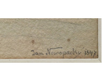 O AUTOROVI: Jan Nowopacký známý také jako Jan Novopacký (15. listopadu 1821, Nechanice – 3. srpna 1908, Slavětín u Loun) byl český malíř, krajinář. Narodil se v chudé rodině napoleonského vojáka, tkalce a lidového malíře. V mládí hrál dobře na housle a flétnu a proto jej jeho rodiče chtěli poslat na učitelská studia, nakonec zvítězilo malování a na přímluvu hraběnky Harrachové nastoupil mladý Jan v sedmnácti letech do učení k vídeňskému portrétnímu malíři Schrotzbergovi. V roce 1839 se poprvé neúspěšně pokusil dostat na vídeňskou akademii, ale pro neznalost němčiny byl odmítnut. Vrátil se do Nechanic a postupně si vzdělání doplnil. V roce 1842 odjel znovu do Vídně a na akademii byl přijat. Studoval krajinomalbu u Thomase Endera, historickou elementární kresbu u Karla Gsellhofera a malbu u Josefa Mössmera. V době studií obdržel řadu prvních cen a roku 1848 I. dvorní cenu za obraz Zpustlý hřbitov, přijatý do dvorní galerie ve Vídni. Se školou podnikl první cesty do Alp, Tyrolska a Štýrska a spřátelil se s s krajinářem J. Zeleným (Selleným). V roce 1848 ze zúčastnil revolučních bojů ve Vídni a po porážce revoluce se z obav před následky přestěhoval do Prahy. Zde se seznámil s významnými českými malíři té doby v čele s Josefem Mánesem. Po smrti svého otce se dostal do těžké hmotné situace, kterou vyřešil vstupem do panských služeb - v roce 1849 přijal místo učitele kreslení v rodině Paarů v Bechyni a od roku 1851 u hrabat Hoyosů v Dolním Rakousku. Tato zaměstnání jej hmotně zabezpečila a umožnila cestovat zejména po střední Itálii a Kampánii. Po návratu do Vídně se v roce 1861 začal opět živit jako učitel malování v rodinách vysoké šlechty, vyučoval také děti císařské rodiny a od roku 1869 byl učitelem malování korunního prince Rudolfa. Tyto známosti u císařského dvora mu vynesly povýšení do rytířského stavu a jmenování kustodem - správcem císařské obrazárny ve Vídni v roce 1880. Kustodem byl až do svého penzionování roku 1895. Skutečnost, že takřka celý svůj život strávil v cizině způsobila, že je považován za rakouského malíře. V Čechách byl objeven až na sklonku svého života a první své souhrnné výstavy v Čechách se dočkal až v roce 1902. Od svého penzionování v roce 1895 žil na penzi v Čechách u své neteře Antonie Kučerové, dcery bratra Václava, nejdříve v Ústí nad Orlicí a později ve Slavětíně u Loun, kde také v roce 1908 zemřel. Pohřben je na tamějším hřbitově. Dílo Nowopacký se věnoval převážně kolorované kresbě a akvarelu. Jako dvorský umělec tvořil elegantní a empírově věcné, poněkud zjemnělé kresby, ale neubránil se jistému formalismu.[1] Pro jeho malbu byl významný pobyt v Itálii a zářivé jižní slunce. Od svých vrstevníků se liší jasnými a plnými tóny barev. Zařadil se do okruhu takzvané vídeňské krajinomalby šedesátých let devatenáctého století, která prvky romantické krajiny jako antické ruiny a osamělé kaple spojuje s realistickým detailem. Vytvořil řadu kreseb pro oblíbená topografická alba, např. sérii akvarelů pro album jižní dráhy (1857). Kromě horských krajin v Albánii a Alpách maloval také na Terrasině, Capri a Tivoli. Portrétoval ženy z Frascatti a Olevana nebo poutníky z Orbita a Gaëty a pastýře z Campagně. V Římě portrétoval Führicha, Overbecka a Payna pro album Paynovy manželky.