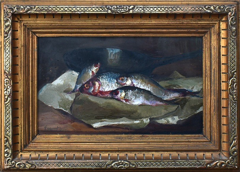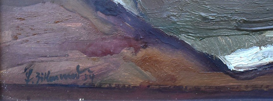 POPIS: Olej na lepence, rozměry : 30 x 50 cm, zaskleno