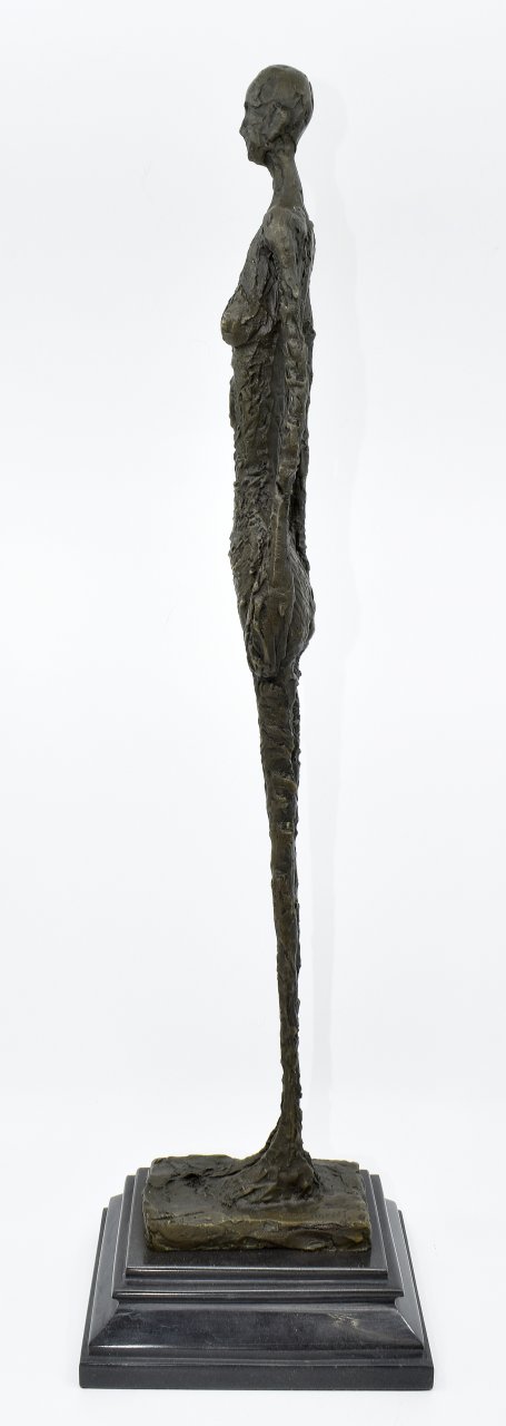 O AUTOROVI: (1901–1966) byl švýcarský sochař, malíř a grafik, jeden z nejvýznamnějších sochařů 20. století. Narodil se v Borgonovu, v italsky mluvící části Švýcarska. Pocházel z uměleckého prostředí. Jeho otec Giovanni Giacometti patřil mezi známé postimpresionistické malíře. Alberto byl nejstarší ze čtyř dětí a byl si velmi blízký se svým podobně starým bratrem Diegem. Už od nejútlejšího dětství měl zájem o umění a navštěvoval výtvarnou školu v Ženevě. V lednu roku 1922 odešel do Paříže, kde studoval u Antoina Bourdelleho. Tam experimentoval s kubismem a surrealismem a stal se jedním z předních surrealistických sochařů. Tři roky po ukončení studia měl svou první velkou výstavu v Salonu des Tuileries v centru Paříže. Mezi jeho spolupracovníky patřili Joan Miró, Max Ernst, Pablo Picasso a Balthus. Mezi lety 1936 a 1940 se soustředil na vyřezávání lidských postav ze dřeva. Koncem roku 1941 Giacometti přesídlil do Ženevy, kde pracoval na zakázkách pro svého bratra Bruna, který byl architektem. V Ženevě se také seznámil s Annette Armovou, která se později stala jeho manželkou. V roce 1962 mu byla udělena hlavní cena za sochařství na bienále v Benátkách. Díky této ceně se mu dostalo světového věhlasu. V pozdějších letech byly jeho obrazy vystavovány na řadě světových výstav po celé Evropě. I přes nepříliš dobré zdraví se vydal v roce 1965 do Spojených států, kde se konala výstava jeho prací v newyorském Muzeu moderního umění. Alberto zemřel v roce 1966 na onemocnění srdce a bronchitidu. Byl pohřben v rodném Borgonovu v blízkosti svých rodičů.