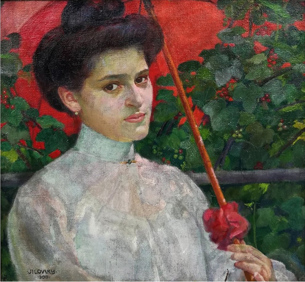 O AUTOROVI: Jiří Jilovský (15. března 1884 Královské Vinohrady – 16. února 1958 Praha) byl český malíř, grafik a scénograf. Náležel ke generaci moderny, z níž pocházela řada osobností, které zasáhly do vývoje moderního umění - z praž-ských a českých Židů jmenujme alespoň Alfreda Justitze (1879-1934), Georga Karse (1880-1945), Maxe Horba (1882-1907), Friedricha Feigla (1884-1965), Emila Pittermanna (1885-1936), Maxe Oppenheimera (1885-1954), Emmu Loewenstammovou (1879-1941) a Huga Steinera (1880-1945) nebo malíře-básníky Františka Gellnera (1881-1914) a Eugena Kahlera (1882-1911). Tato generace se naplno otevřela novému umění a často se bouřlivě rozešla s minulostí. Na rozdíl od většiny z nich se Jiří Jilovský nenechal zlákat možnostmi nového uměleckého výrazu a celý život zůstal v podstatě realistou, kultivujícím své grafické i malířské práce nápaditou stylizací a symbolismem. Již v mládí ho okouzlila poezie romantické a tajuplné Prahy, jak ji tehdy ve svých dílech šířili příslušníci seskupení „Mladá Praha“, básníci a spisovatelé Oskar Wiener, Paul Lepin, Camille Hoffmann, Gustav Meyrink nebo Rainer Maria Rilke. Narodil se na pražském předměstí Královských Vinohradech v židovské rodině obchodníka Josefa Jilovského. Měl šest sourozenců, bratry Emila (1882)[1], Pavla (1889)[2], Františka (1894)[3] a Richarda (1897)[4], a sestry Helenu (1885) a Editu (1908). Navštěvoval českou základní školu a po jejím absolvování byl rodinou předurčen k povolání obchodníka. V roce 1900 proti otcově vůli začal studovat na Uměleckoprůmyslové škole v Praze. Nastoupil do ateliéru E. K. Lišky a Jakuba Schikanedera, ale své vzdělání si ještě rozšiřoval u prof. Jana Preislera a Felixe Jeneweina. V roce 1904 přestoupil na Akademii výtvarných umění v Praze, kde studoval ve speciálce Františka Thieleho. Roku 1907 studium absolvoval a poté krátce pobýval za účelem dalšího zdokonalování v Mnichově. V roce 1908 se vrátil do Prahy zařídil si podkrovní atelier v Haštalské ulici č. 6, který užíval až do konce 30. let. V letech 1904–1909, 1912 a 1914 byl na studijních cestách v Rakousku, Německu, Švýcarsku, Itálii a Francii. Od roku 1904 se Jilovský věnoval také Ex libris a v různých grafických technikách jich vytvořil na 120 kusů. Byl členem „Spolku německých výtvarných umělců v Čechách“, spolku „Hagenbund“ a „Svazu německých spisovatelů a umělců CONCORDIA“.V lednu roku 1915 se účastnil „Panama-Pacific International Exposition“ v San Franciscu a v únoru narukoval do první světové války jako dobrovolník k pěchotě a v následujícím roce se dostal na bojiště v Haliči. Zde mimo jiné kreslil portrétní studie rakouských vojáků všech typů, hodností a národností. V únoru roku 1917 měl první samostatnou výstavu v Rubešově salonu v Praze, později vystavoval v Ústí nad Labem, Brně, Linci, Vídni, v Berlíně, Vratislavi, Hamburku, Mnichově, Drážďanech a St. Louis. V září roku 1921 byl jmenován uměleckým vedoucím propagačního oddělení společnosti „La Tricolore“ v Praze. V roce 1924 se oženil s Marií Meuselovou, která byla činná jako dámská krejčová v Praze. V manželství se jim narodili dva synové, Hanuš (1926) a Arnošt (1931). V roce 1927 uspořádala Krasoumná jednota v Rudolfinu výstavu Jilovského Ex-libris. Od roku 1928 Jilovský pracoval jako jevištní výtvarník pro Nové německé divadlo v Praze. K významnějším realizacím patřila například výprava Meyerbeerovy opery Hugenoti (1928), Mozartova Figarova svatba nebo Shakespearova divadelní hra Romeo a Julie (1929). Mezi jeho nejzdařilejší divadelní realizace patřila však scénická výprava k opeře Jaromíra Weinbergera Švanda dudák (1929). V roce 1931 obdržel za své inscenace pro Nové německé divadlo státní cenu. Ve 30. letech vytvořil Jilovský pro pražské listy také řadu karikatur hudebníků, např. A. Zemlinského, E. Schulhoffa, režiséra R. Stadlera, kritika F. Adlera a mnoho dalších. Po nacistické okupaci českých zemí byli postupně do terezínského ghetta deportováni Jilovského sourozenci se svými rodinami a nakonec také jeho starší syn Han