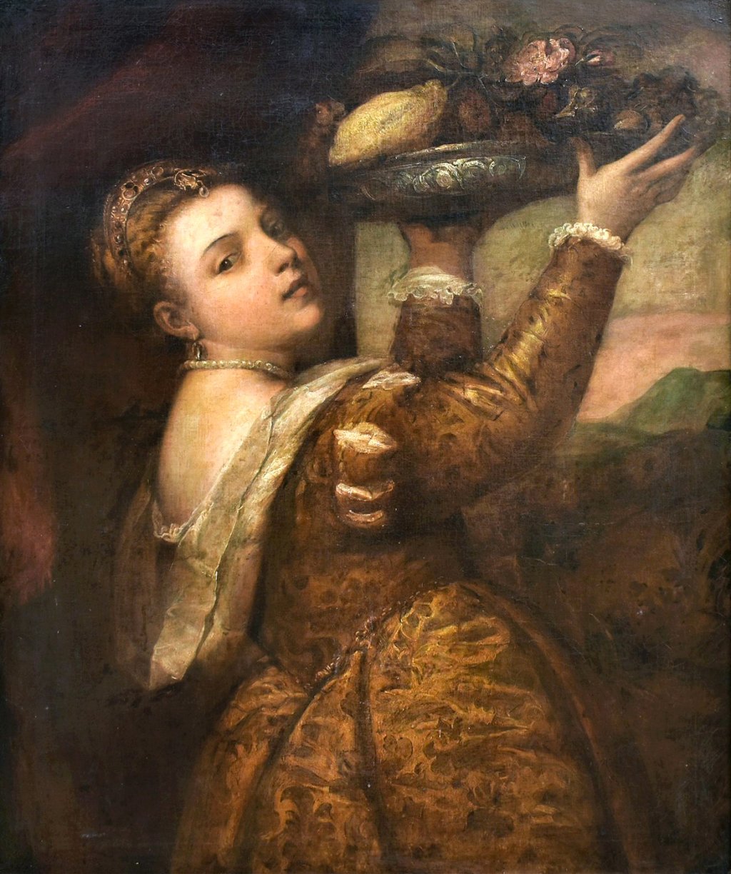Žena s podnosem - velký formát Tiziano Vecelli - napodobitel