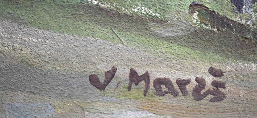 POPIS: Olej na plátně, rozměr 55,5 x 70 cm, poškozený rám
