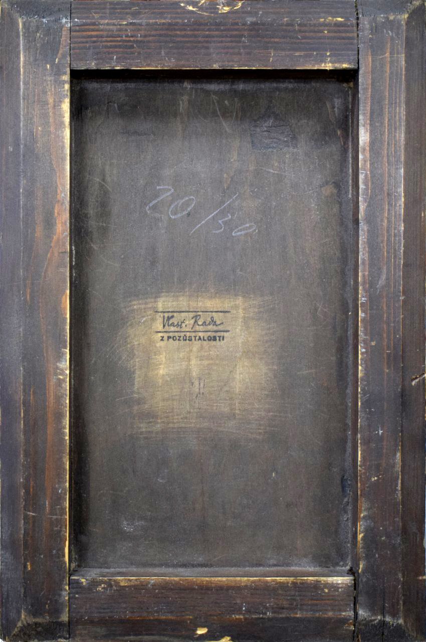 POPIS: Olej na plátně fixováno na lepence, rozměr 30 x 20 cm, nerámováno, na zadní straně pozůstalostní razítko Vlastimil Rada