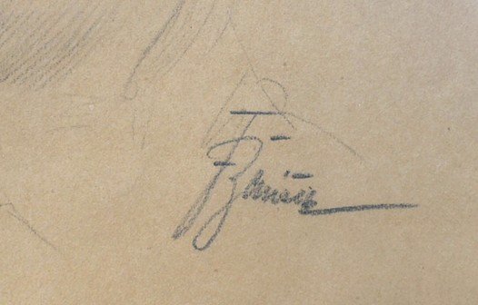 POPIS: Kresba tužkou, rozměry oválu : 32 x 24 cm, mírně poškozeno, zaskleno