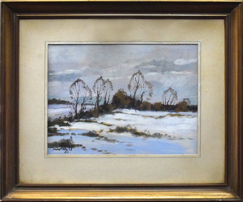 POPIS: Olej na lepence, rozměr ve výřezu 25,5 x 35 cm, zaskleno