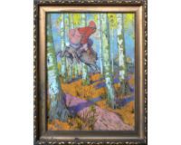 POPIS: Kvaš na silnějším papíru, rozměry: 69 x 51 cm. Velkoformátový návrh ilustrace pohádky kde je viditelný vliv Hanuše Schwaigera, rámováno, zaskleno, rám poškozený. Původní návrh z nakladatelství Edvard Beaufort