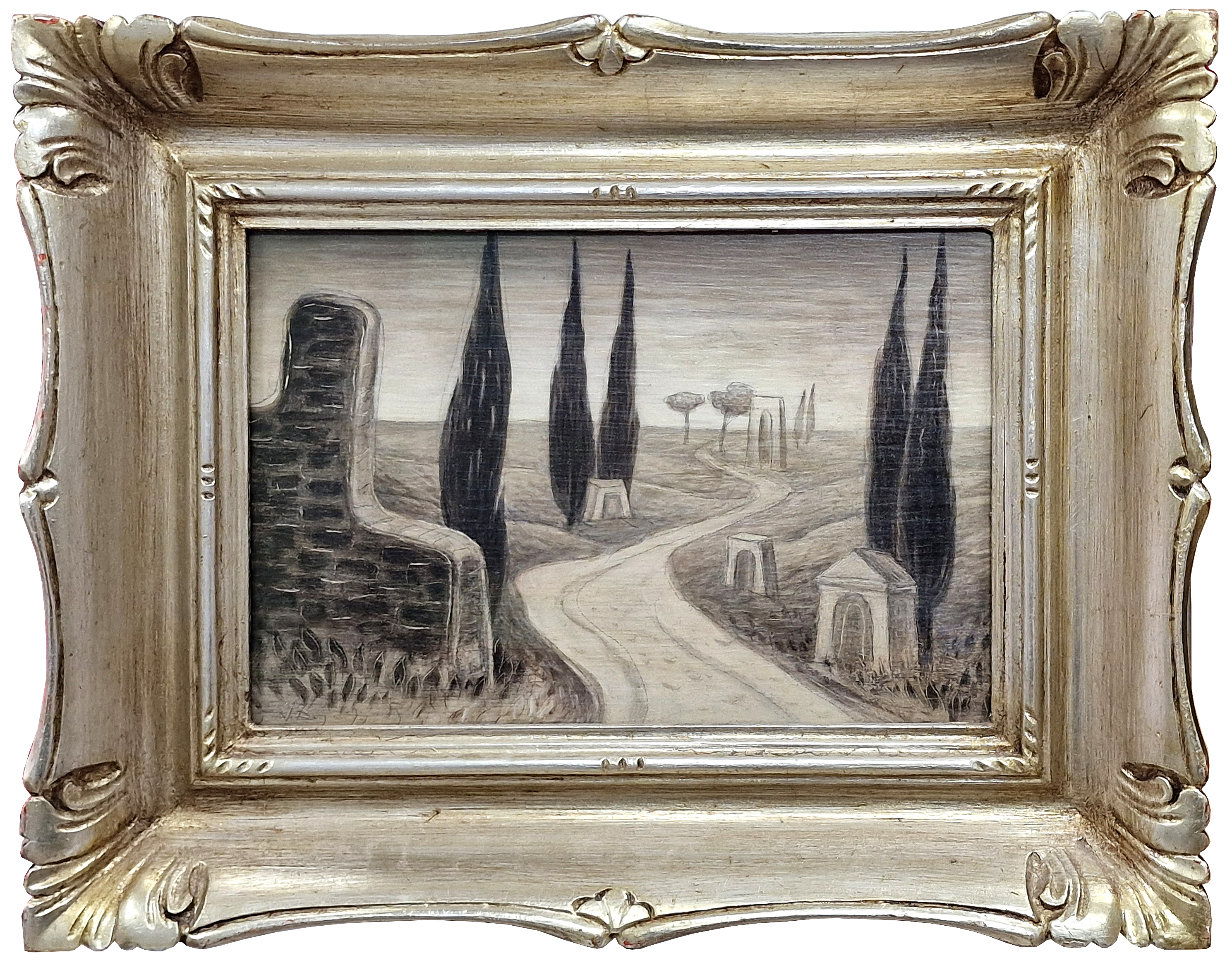 POPIS: Olej na překližce, rozměr 21 x 30,5 cm, zaskleno. K dílu přiložen posudek od PhDr. Jany Orlíkové z roku 2012 + kopie posouzení od PhDr. Jaromíra Zeminy z roku 2012 a laboratorní zpráva od Dorothey Pechové z roku 2012